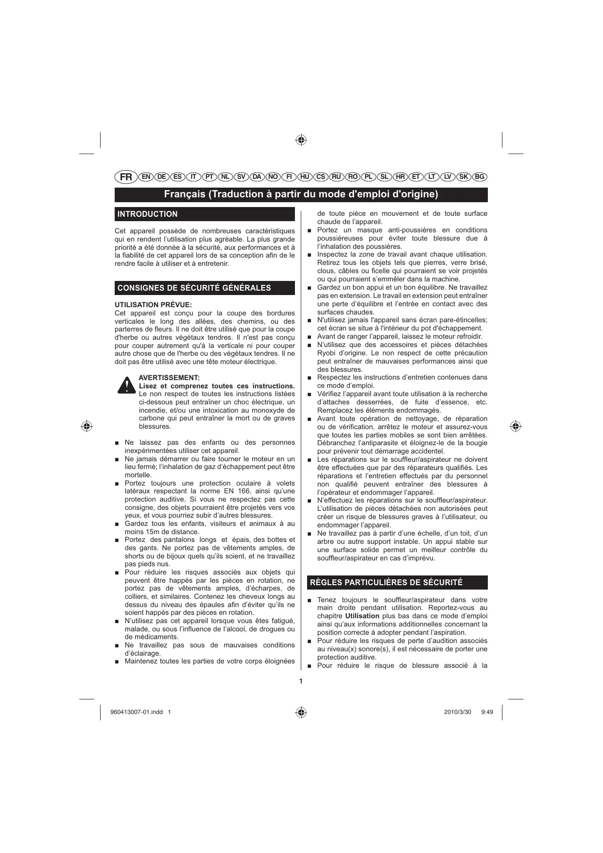 FR EN DE ES IT PT NL SV DA NO FI HU CS RU RO PL SL HR ET LT LV SK BG Français (Traduction à partir du mode d'emploi d'origine)