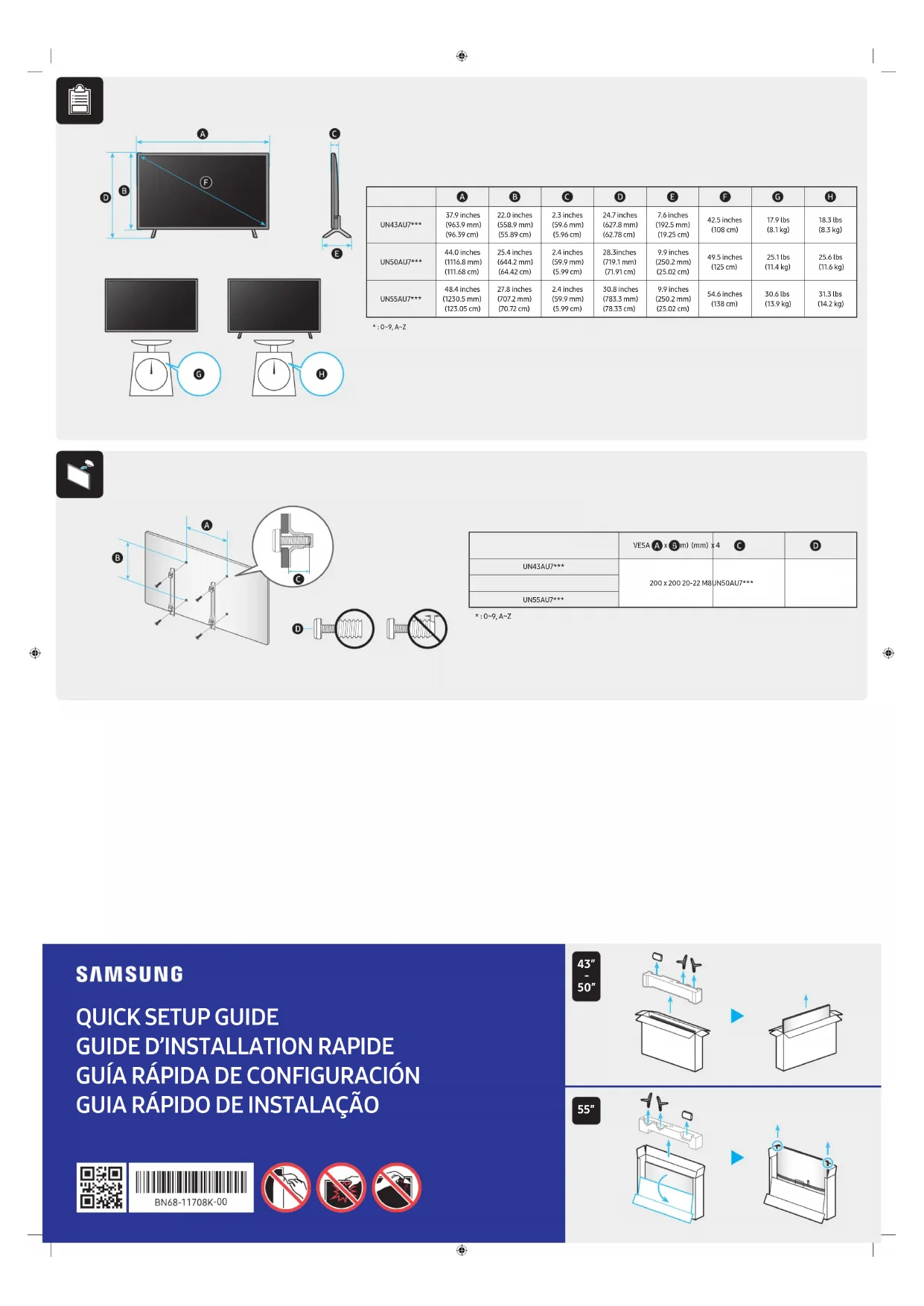 UN50AU7700G - Téléviseur SAMSUNG - Notice d'utilisation et mode d'emploi gratuit