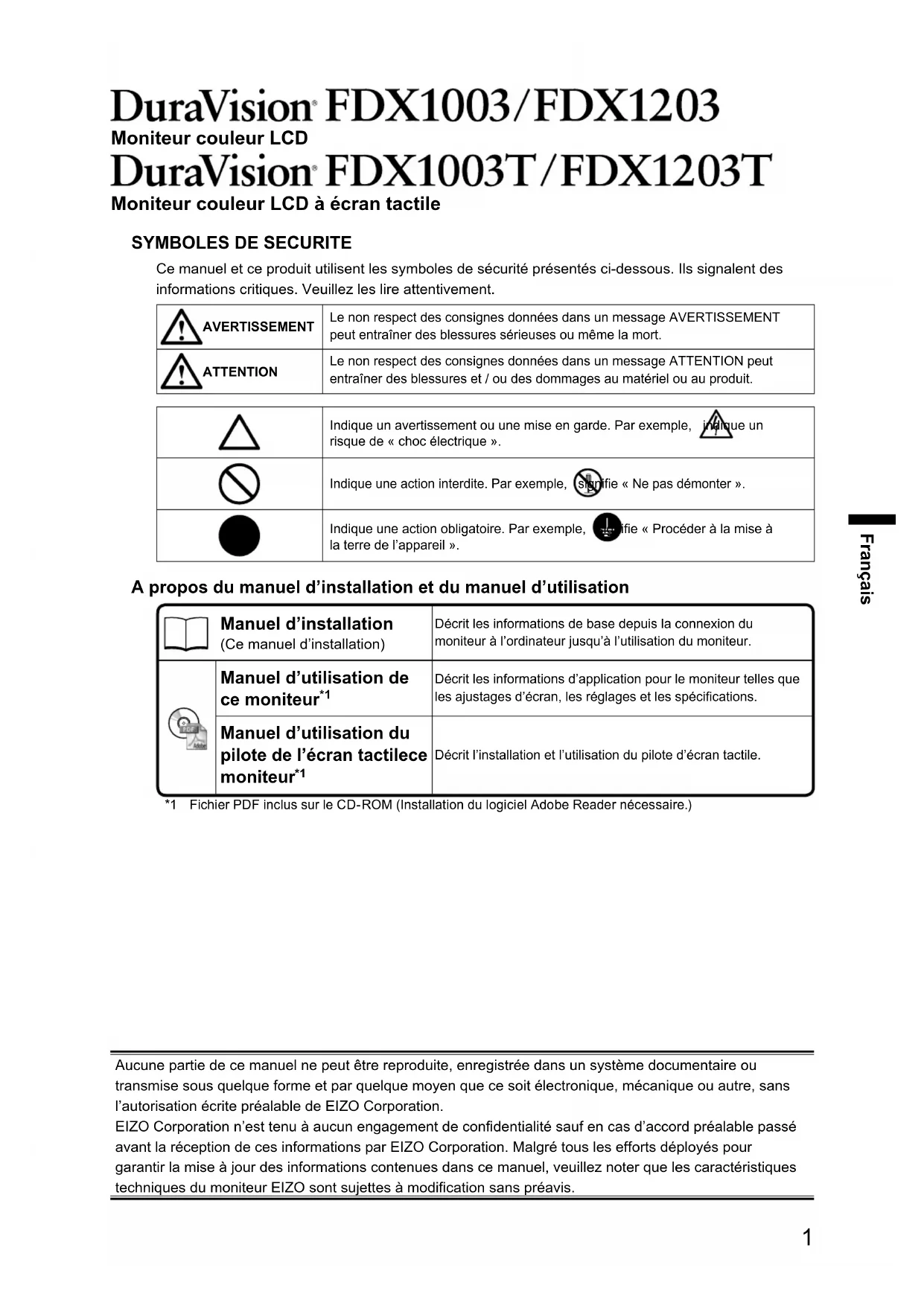 MODE D'EMPLOI DuraVision FDX1003T EIZO