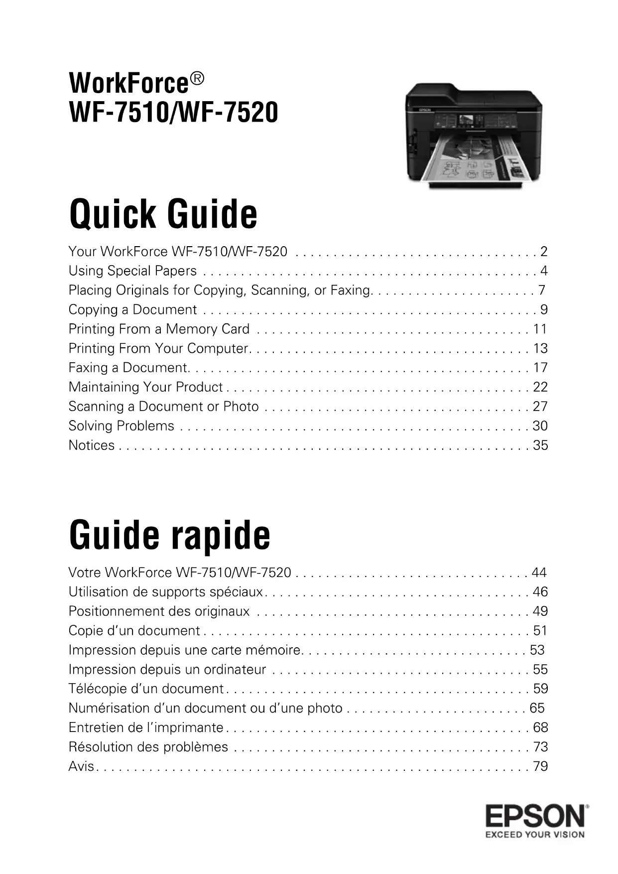 WorkForce WF7520 - Imprimante EPSON - Notice d'utilisation et mode d'emploi gratuit