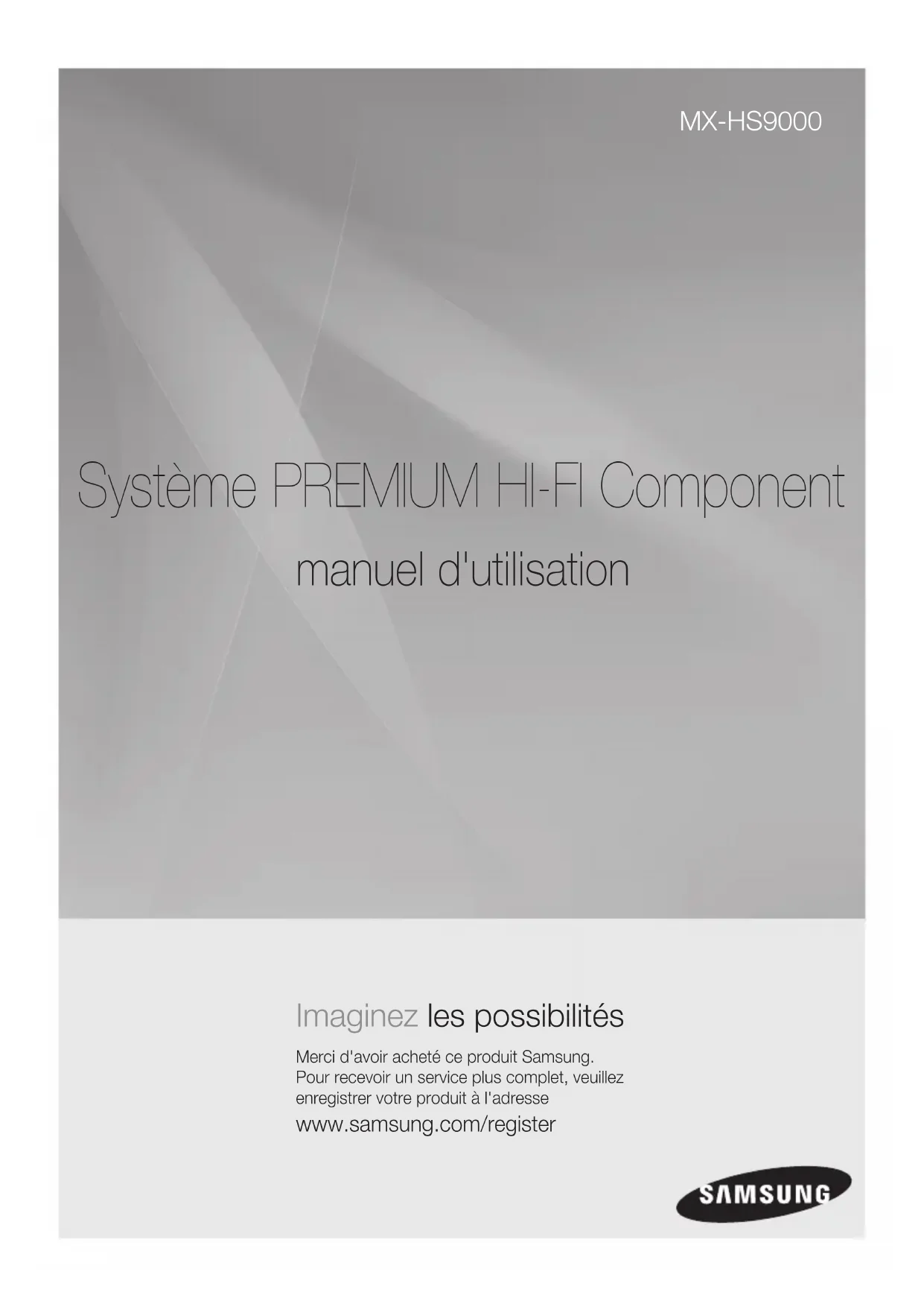 www.samsung.com/africa_en/support Ghana 0800-10077 0302-200077 Cote D’ Ivoire 8000 0077 www.samsung.com/africa_fr/supportSENEGAL 800-00-0077 CAMEROON 7095-0077 KENYA 0800 545 545 www.samsung.com/support UGANDA 0800 300 300 TANZANIA 0685 88 99 00 RWANDA 9999 BURUNDI 200 DRC 499999 SUDAN 1969 SOUTH AFRICA 0860 SAMSUNG (726 7864) www.samsung.com/support BOTSWANA 8007260000 NAMIBIA 08 197 267 864 ZAMBIA 0211 350370 MOZAMBIQUE 847267864 / 827267864 [MX-HS9000-SJ,ZN]AH68-02687H-03ARAB-.indd 28 2014-05-27 오전 10:17:15Système PREMIUM HI-FI Component manuel d'utilisation MX-HS9000 Imaginez les possibilités Merci d'avoir acheté ce produit Samsung. Pour recevoir un service plus complet, veuillez enregistrer votre produit à l'adresse www.samsung.com/register [MX-HS9000-SJ,ZN]AH68-02687H-04FRA.indd 1 2014-05-30 오후 3:02:56Consignes de sécurité
