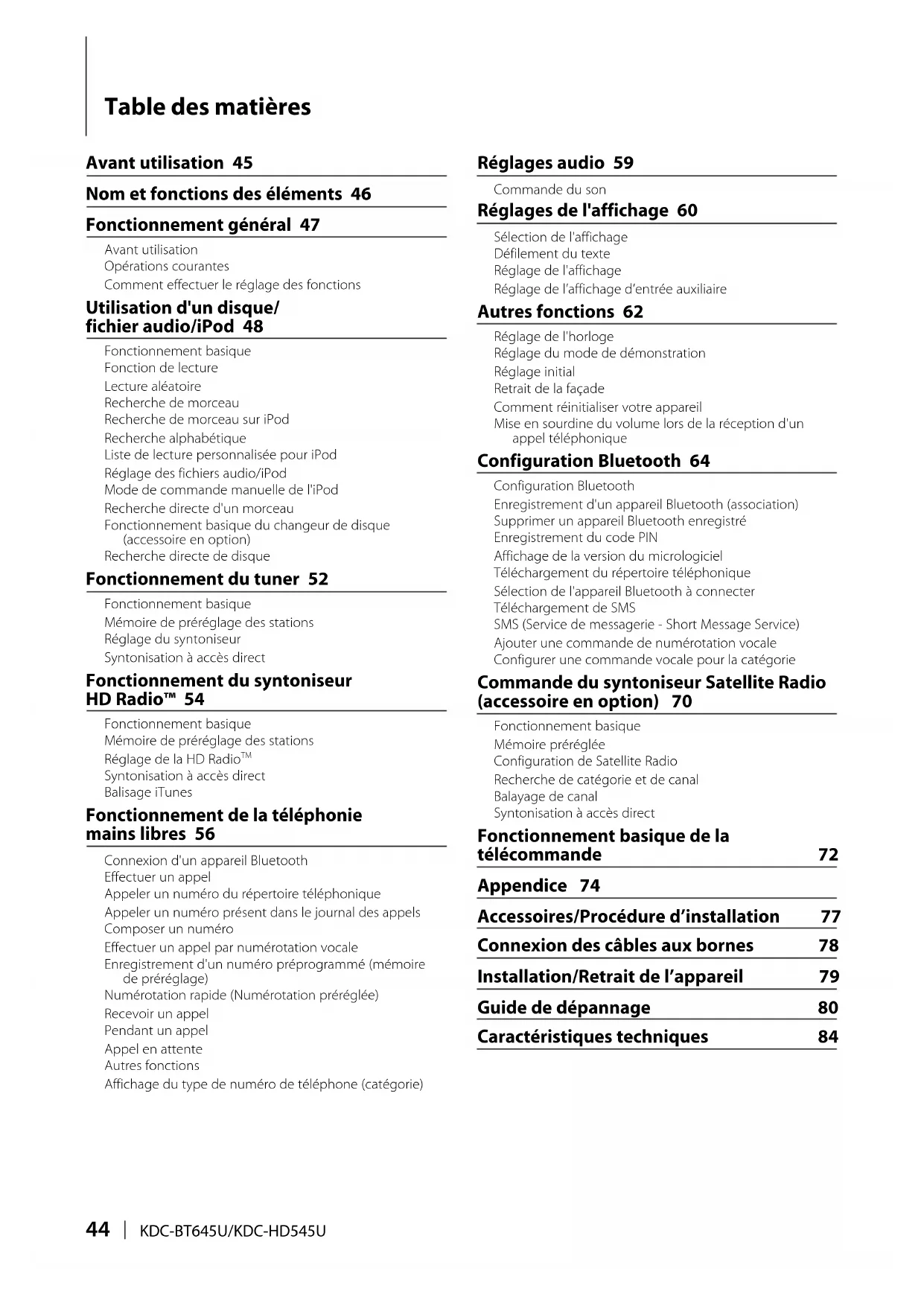 Retrouvez gratuitement la notice de l'appareil KDCBT645U KENWOOD au format PDF.