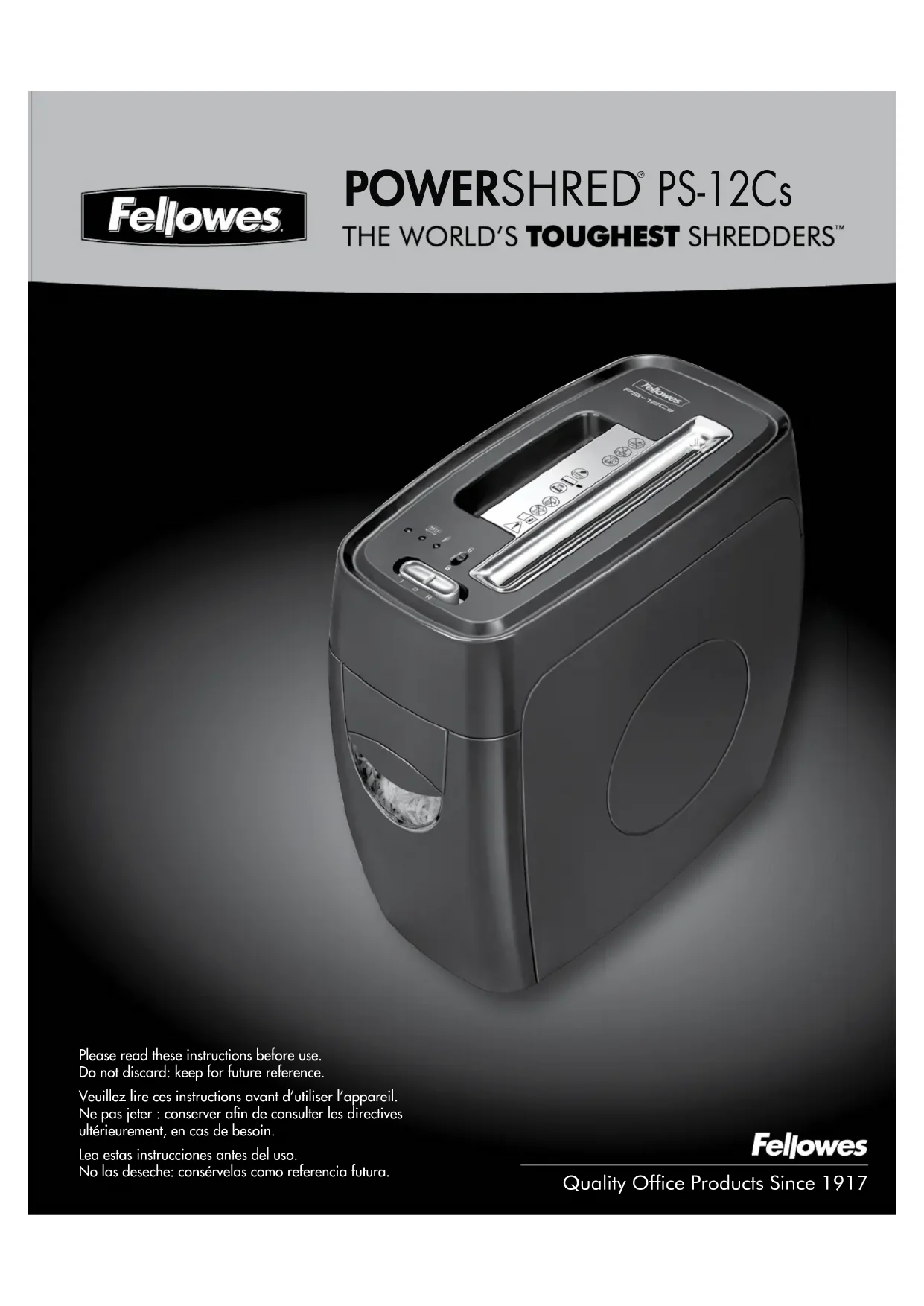 Retrouvez gratuitement la notice de l'appareil Powershred PS12Cs FELLOWES au format PDF.