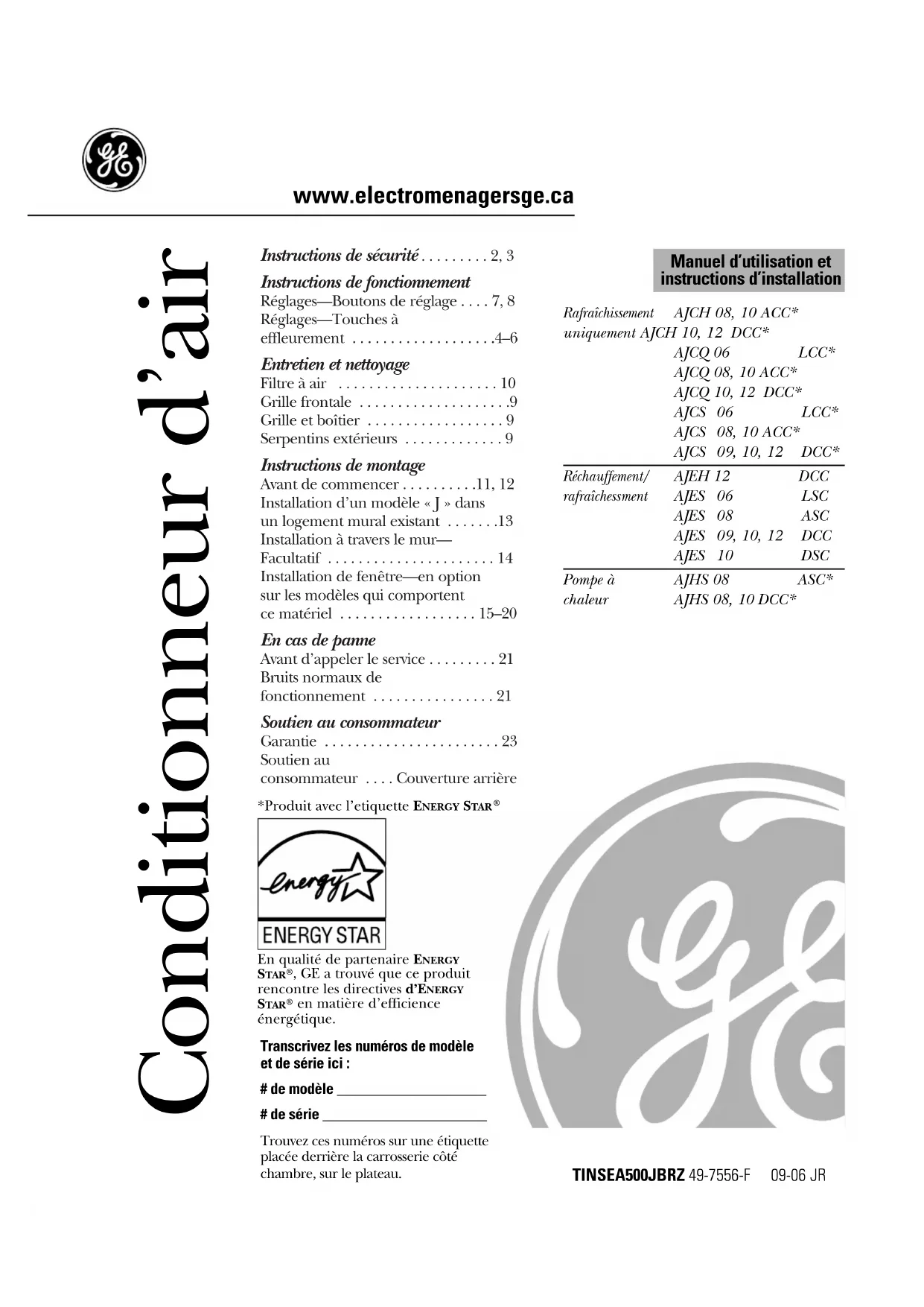 Téléchargez la notice de votre Climatisation au format PDF gratuitement ! Retrouvez votre notice AJCS08ACB - GE et reprennez votre appareil électronique en main. Sur cette page sont publiés tous les documents nécessaires à l'utilisation de votre appareil AJCS08ACB de la marque GE.