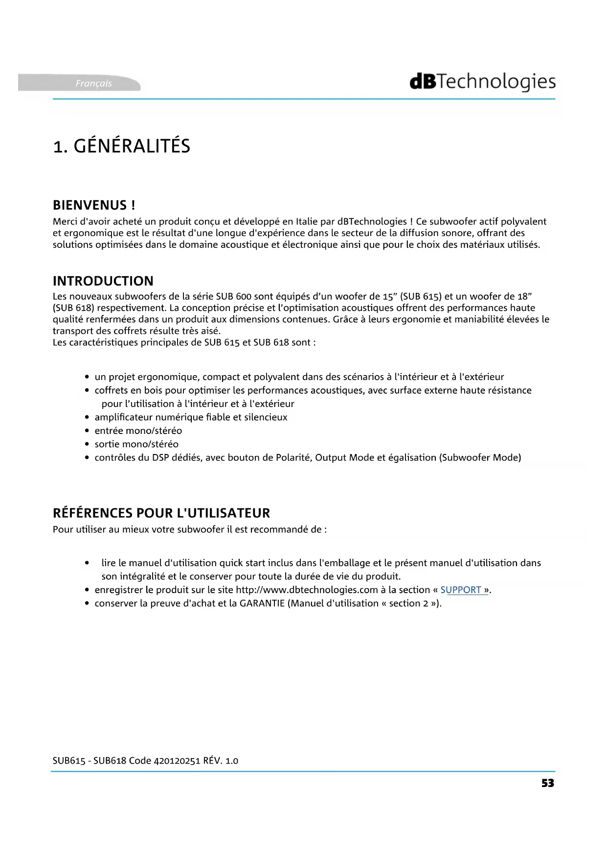 Retrouvez gratuitement la notice de l'appareil Sub 618 DB Technologies au format PDF.
