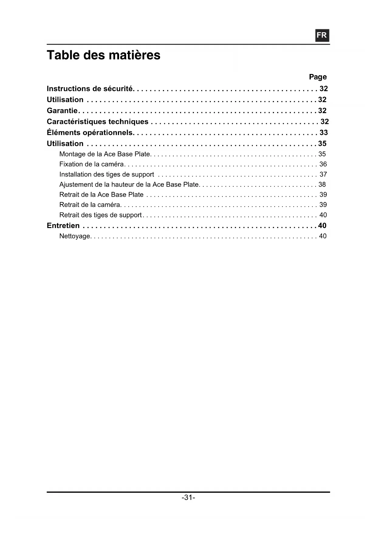 - Ajustement de la hauteur de la Ace Base Plate p. 38