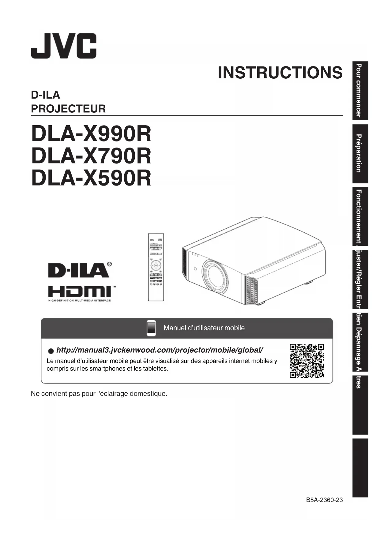 Retrouvez gratuitement la notice de l'appareil DLAX590R JVC au format PDF.
