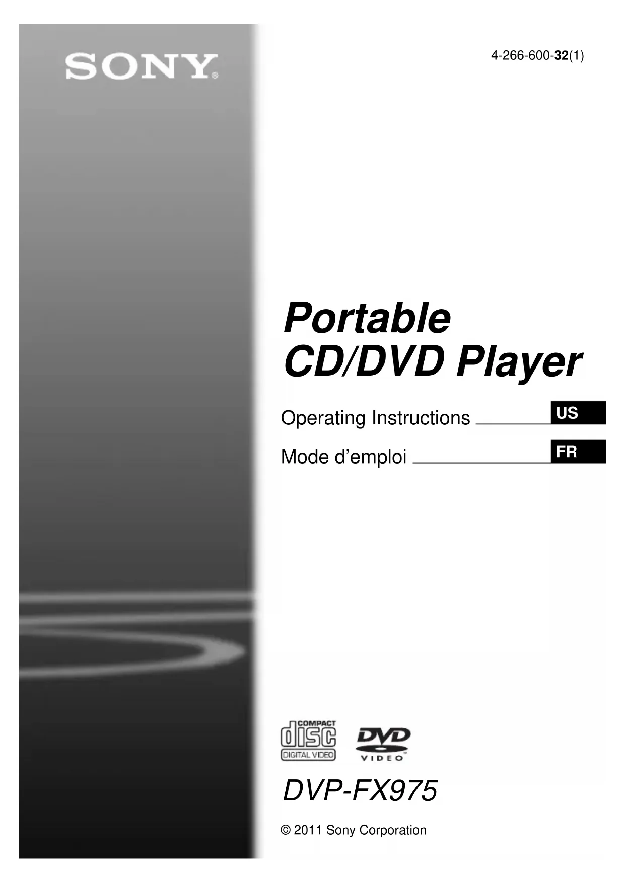 Téléchargez la notice de votre Lecteur dvd au format PDF gratuitement ! Retrouvez votre notice DVPFX975 - SONY et reprennez votre appareil électronique en main. Sur cette page sont publiés tous les documents nécessaires à l'utilisation de votre appareil DVPFX975 de la marque SONY.