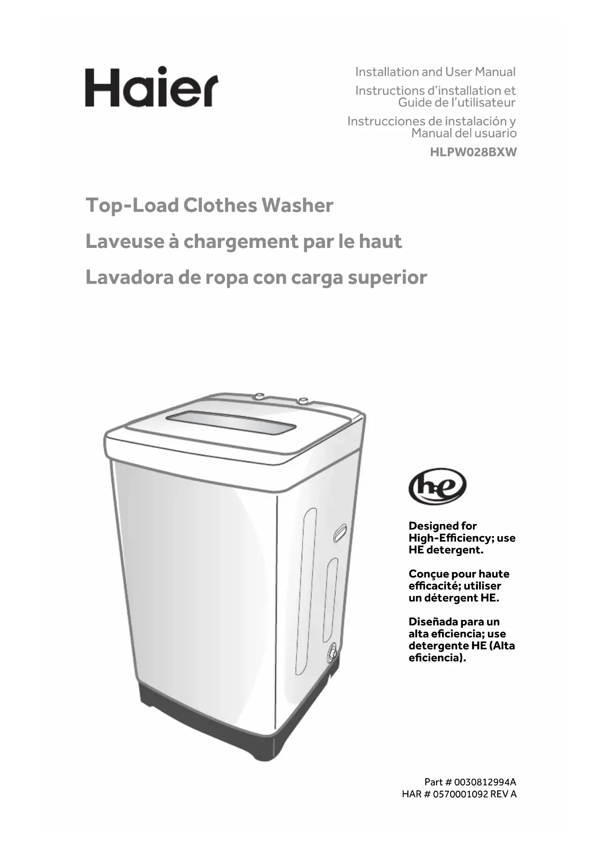 Retrouvez gratuitement la notice de l'appareil HLPW028BXW HAIER au format PDF.