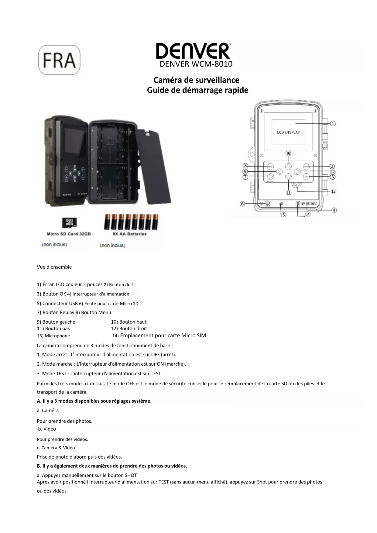 DENVER WCM-8010 Caméra de surveillance Guide de démarrage rapide Vue d'ensemble