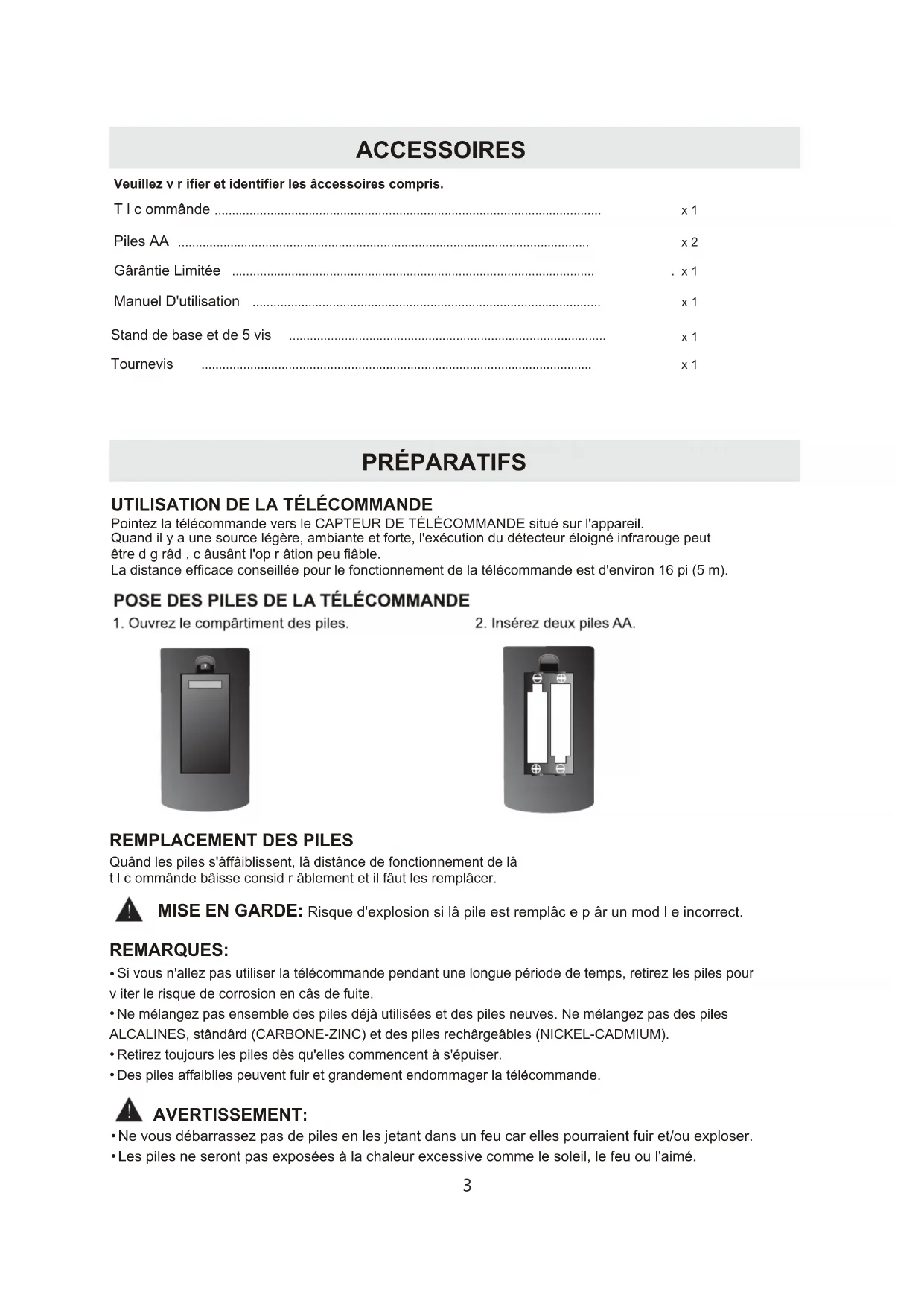 - Des piles affaiblies peuvent fuir et grandement endommager la télécommande.
