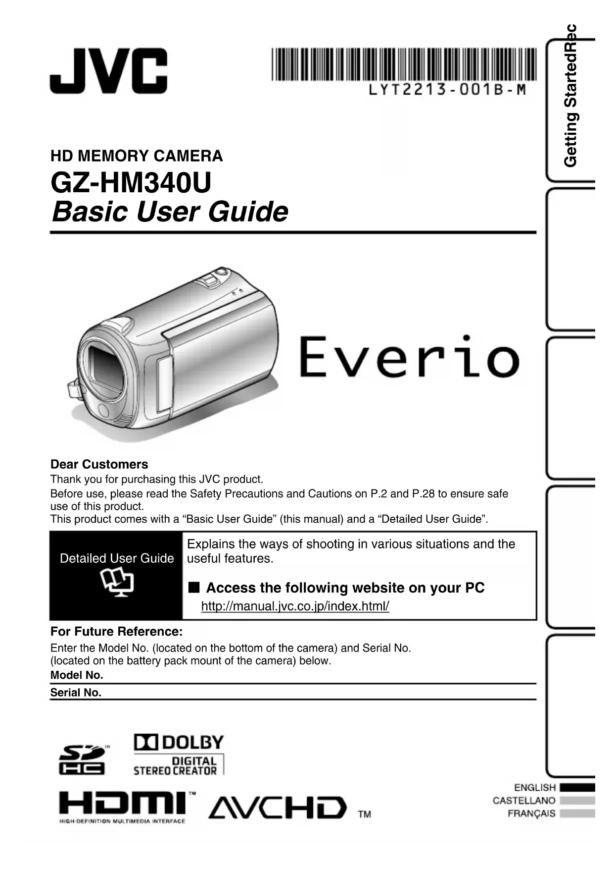 Retrouvez gratuitement la notice de l'appareil Everio GZHM340 JVC au format PDF.