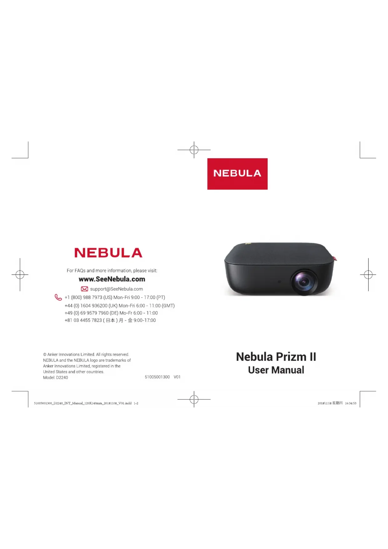 Téléchargez la notice de votre Projecteur au format PDF gratuitement ! Retrouvez votre notice Prizm II - NEBULA et reprennez votre appareil électronique en main. Sur cette page sont publiés tous les documents nécessaires à l'utilisation de votre appareil Prizm II de la marque NEBULA.