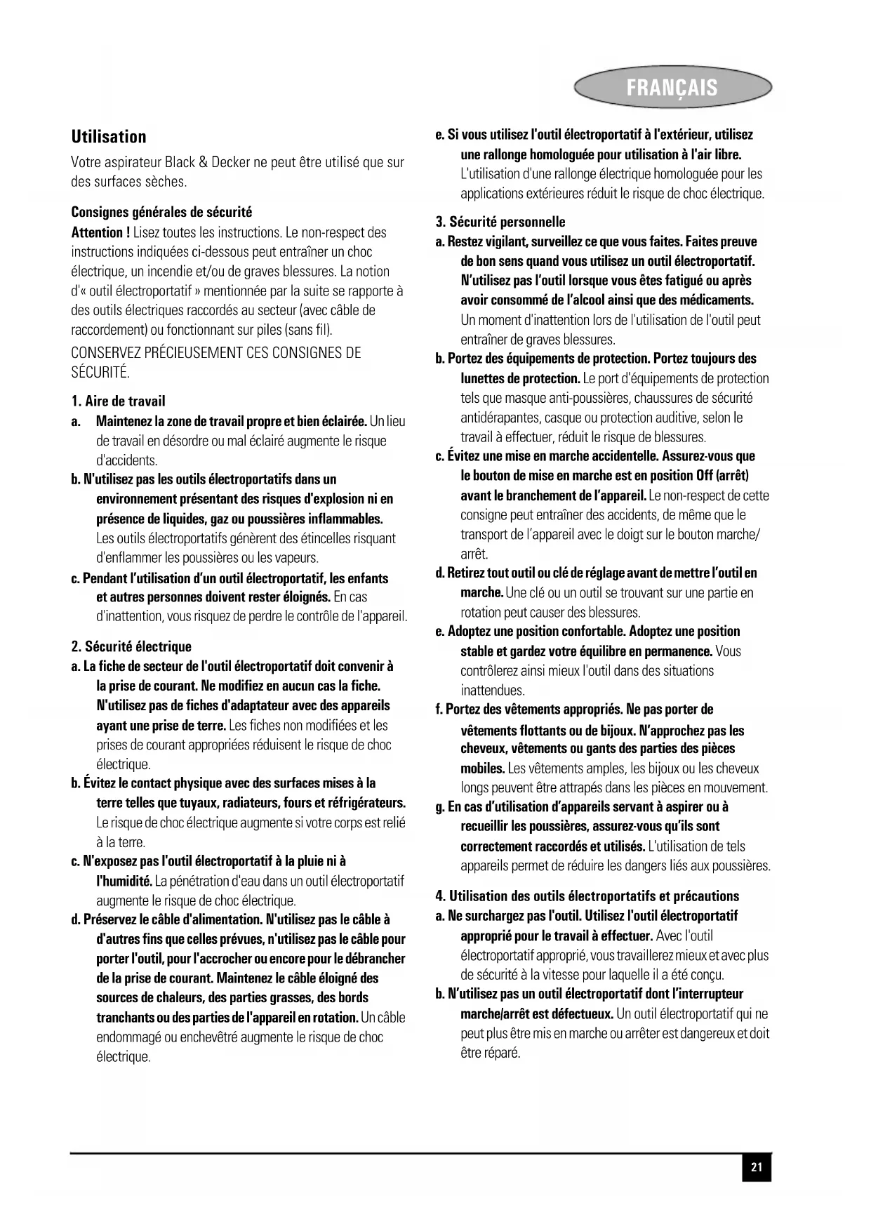4. Utilisation des outils électroportatifs et précautions