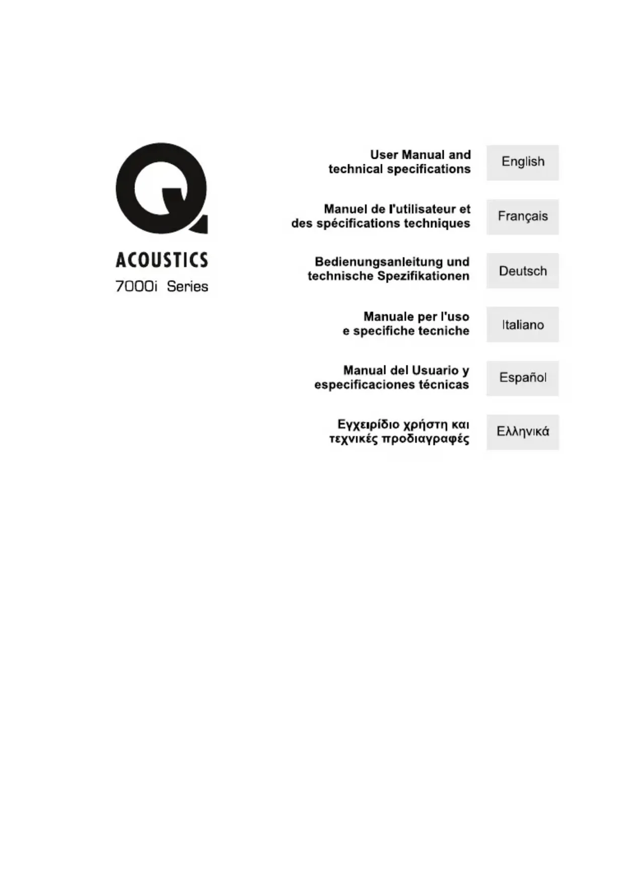 Retrouvez gratuitement la notice de l'appareil 7000i Q ACOUSTICS au format PDF.