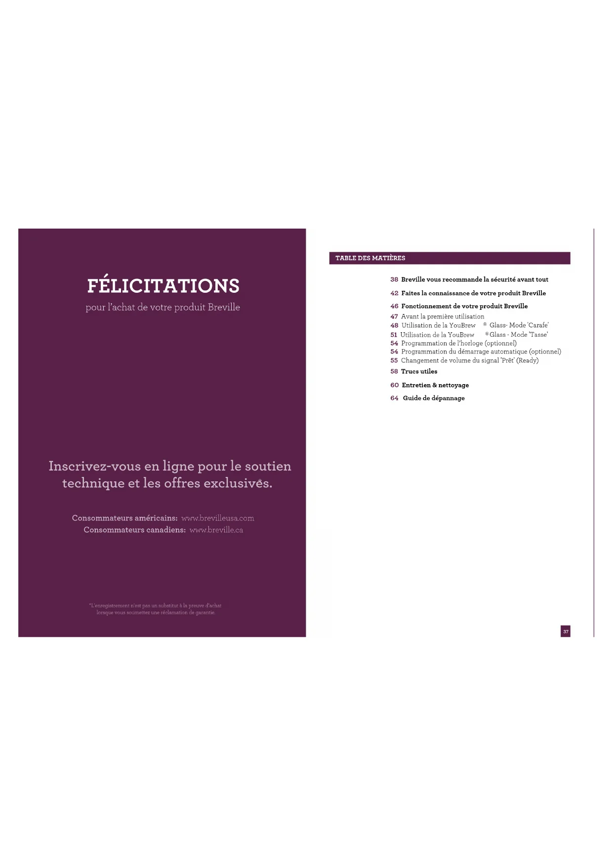 FÉLICITATIONS pour l’achat de votre produit Breville38 39 BREvILLE voUS RECoMMAnDE LA SÉCURItÉ AvAnt toUtBREvILLE voUS RECoMMAnDE LA SÉCURItÉ AvAnt toUt