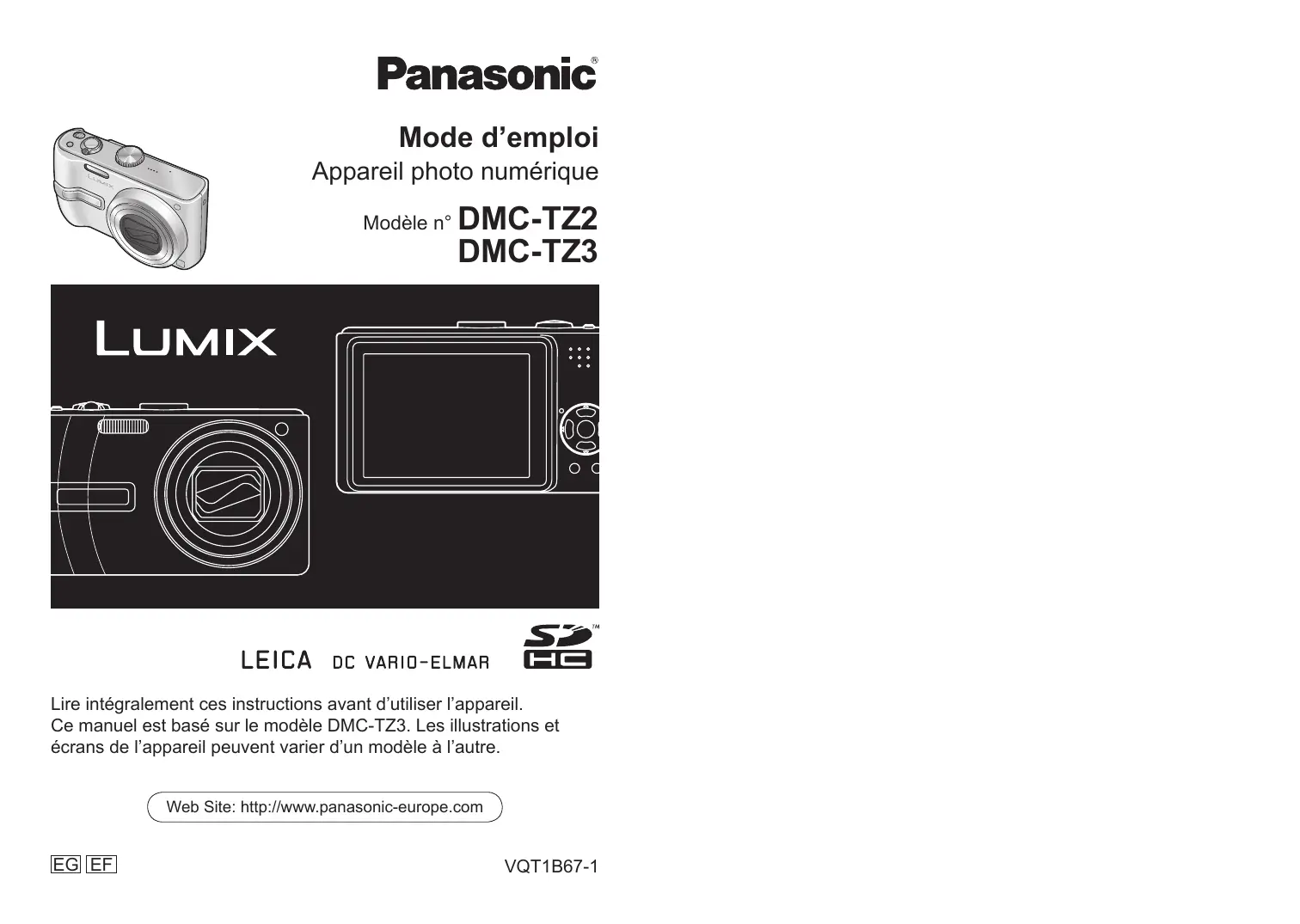Mode d’emploi Appareil photo numérique Modèle n° DMC-TZ2 DMC-TZ3 Lire intégralement ces instructions avant d’utiliser l’appareil. Ce manuel est basé sur le modèle DMC-TZ3. Les illustrations et écrans de l’appareil peuvent varier d’un modèle à l’autre. Web Site: http://www.panasonic-europe.com EG EF