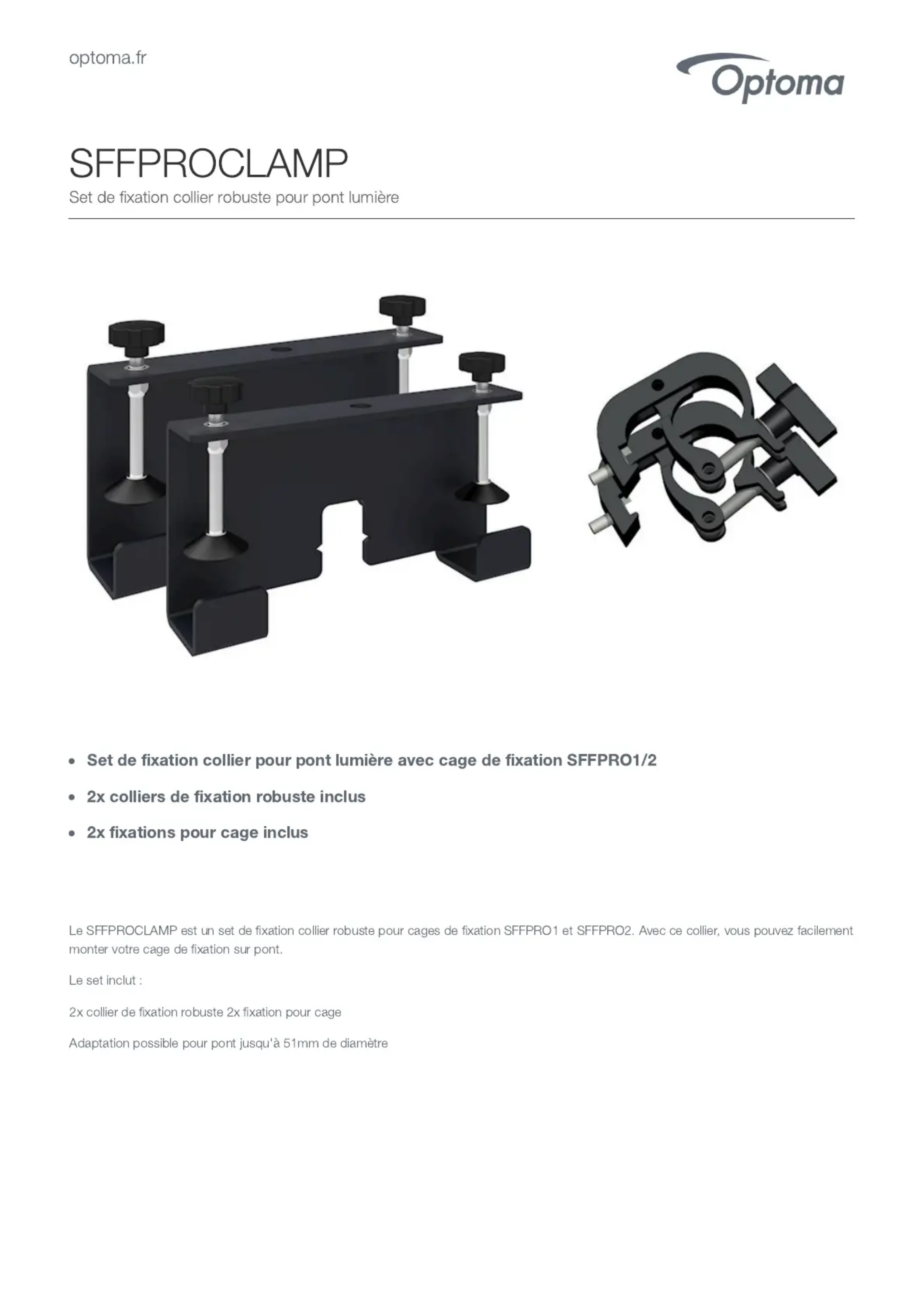 SFFPROCLAMP - Accessoire d'éclairage OPTOMA - Notice d'utilisation et mode d'emploi gratuit