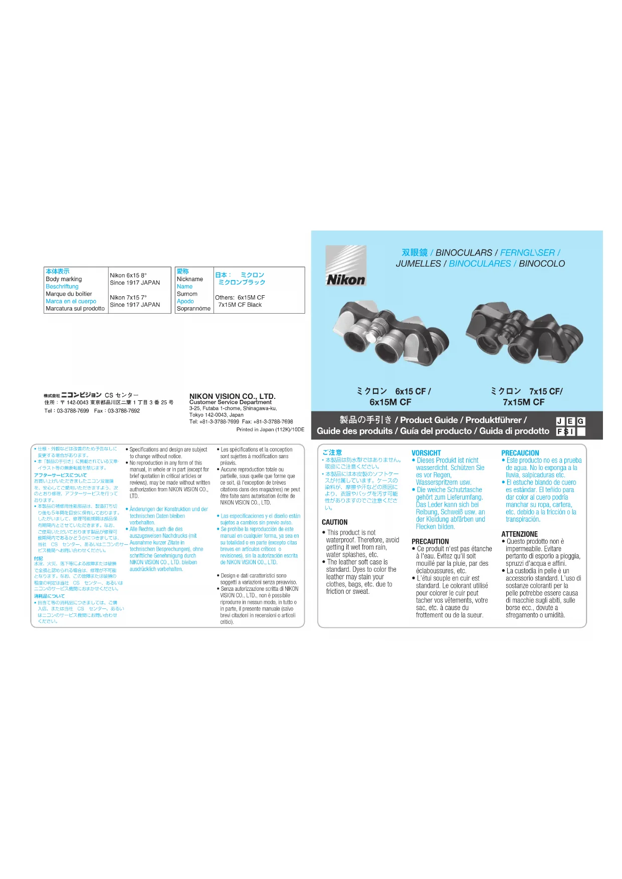 Retrouvez gratuitement la notice de l'appareil 6x15M CF NIKON au format PDF.