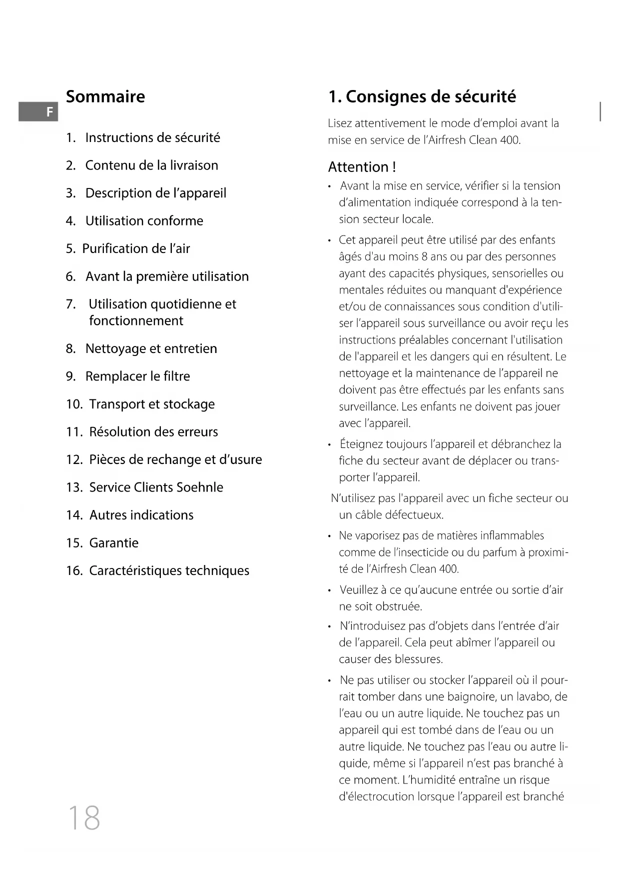 MODE D'EMPLOI Airfresh Clean 400 SOEHNLE
