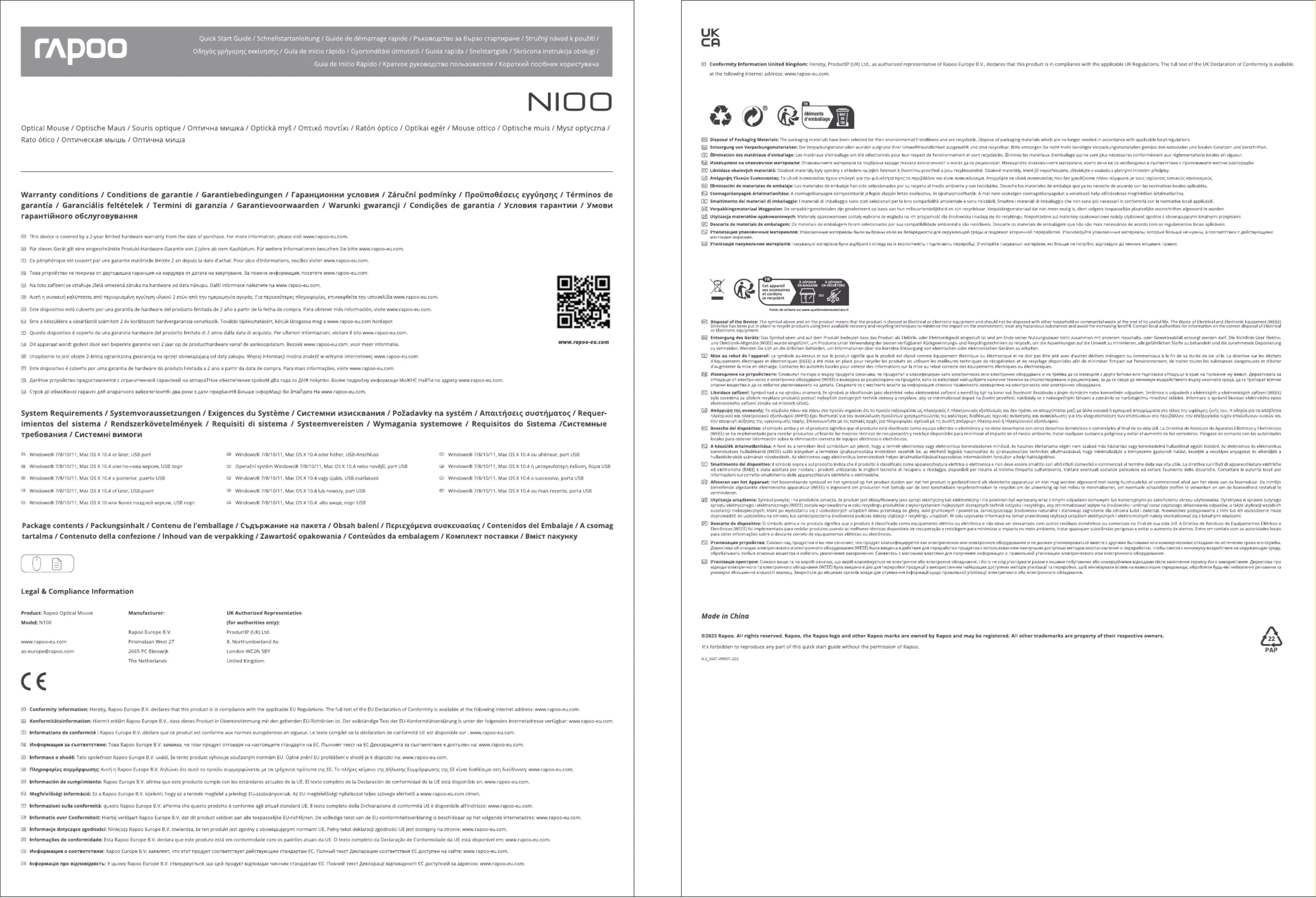 N100 - Souris RAPOO - Notice d'utilisation et mode d'emploi gratuit