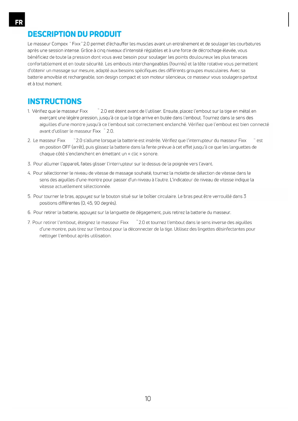 Fixx 2.0 - Appareil de massage COMPEX - Notice d'utilisation et mode d'emploi gratuit