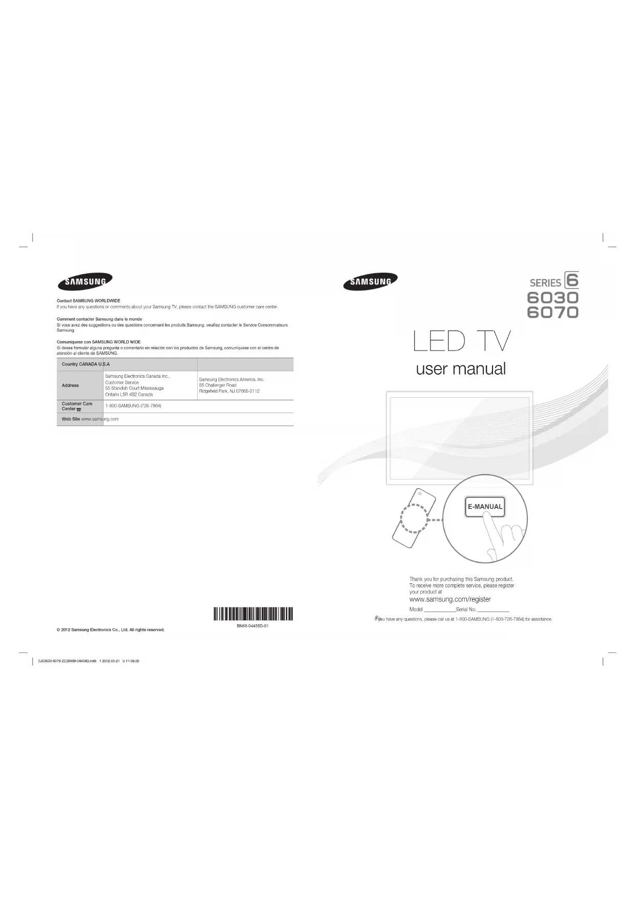 Retrouvez gratuitement la notice de l'appareil UN55EH6070F SAMSUNG au format PDF.