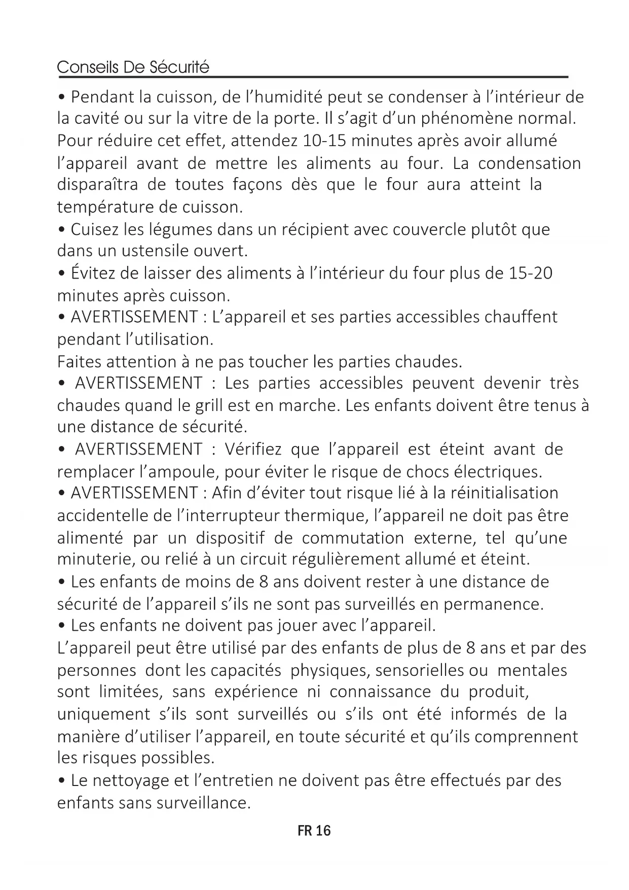 - Les enfants de moins de 8 ans doivent rester à une distance de sécurité de l'appareil s'ils ne sont pas surveillés en permanence.