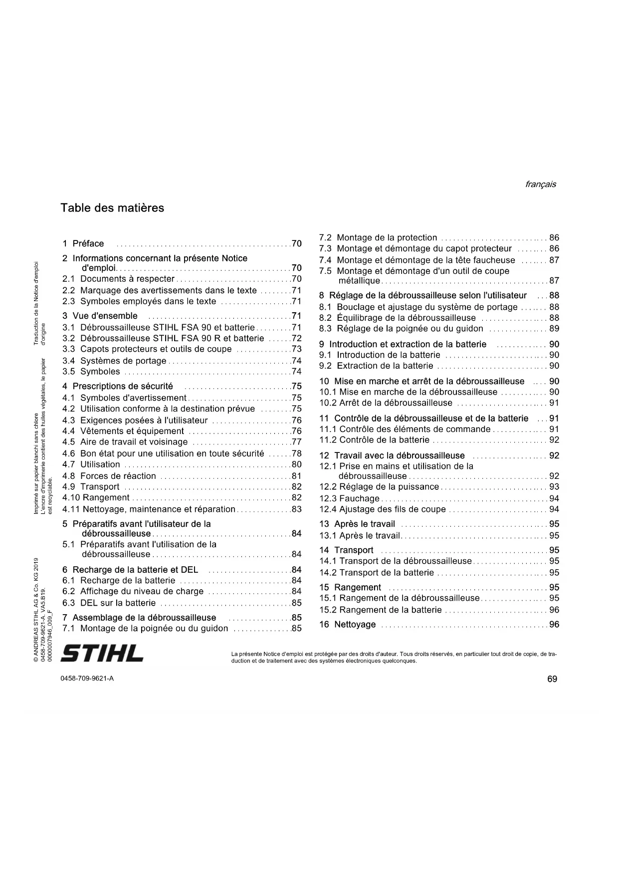 1Préface 2 Informations concernant la présente Notice d'emploi0458-709-9621-A