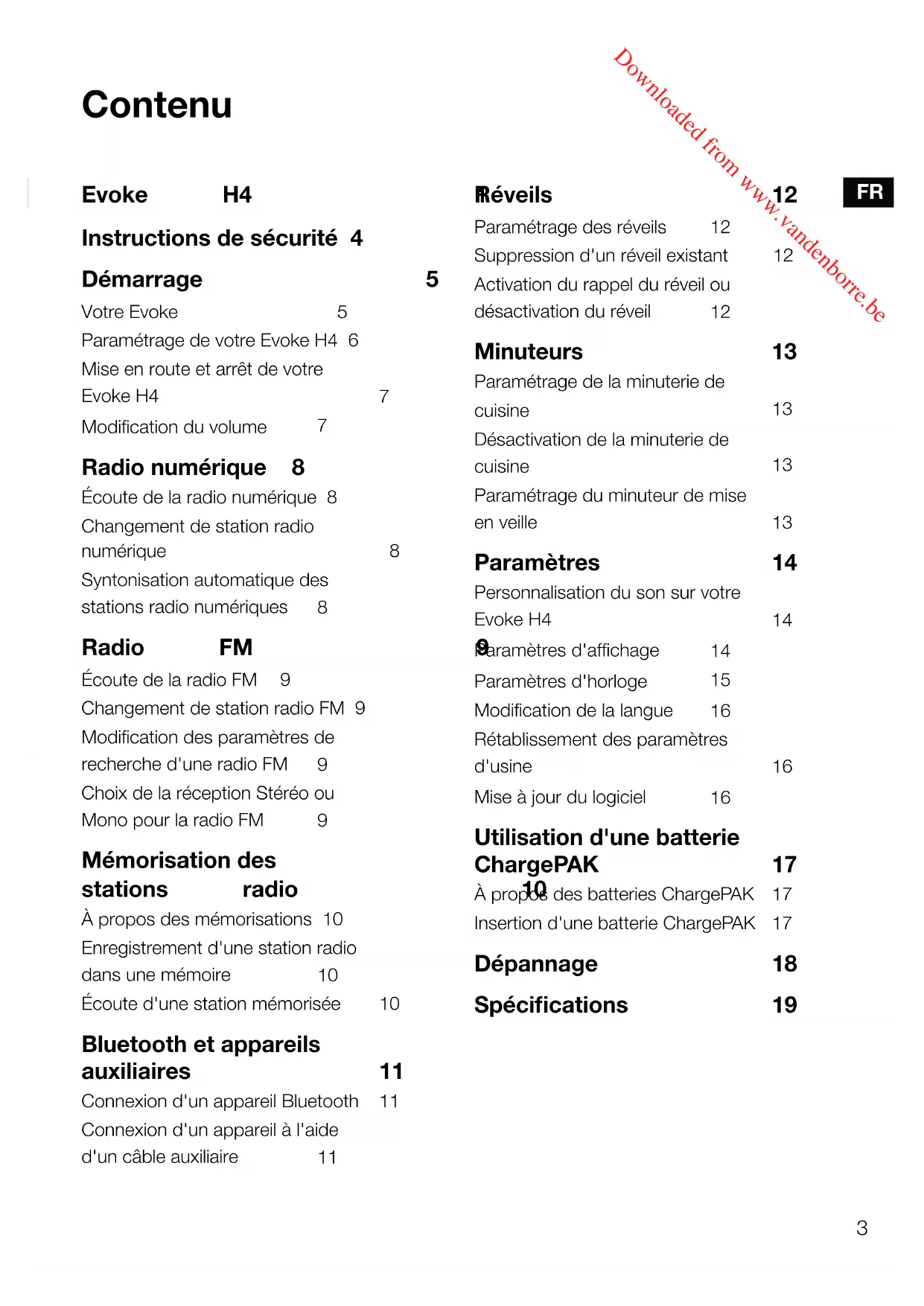Downloaded from www.vandenborre.be2 Downloaded from www.vandenborre.be3 Contenu Evoke H4 1 Instructions de sécurité 4 Démarrage 5 Votre Evoke 5 Paramétrage de votre Evoke H4 6 Mise en route et arrêt de votre Evoke H4