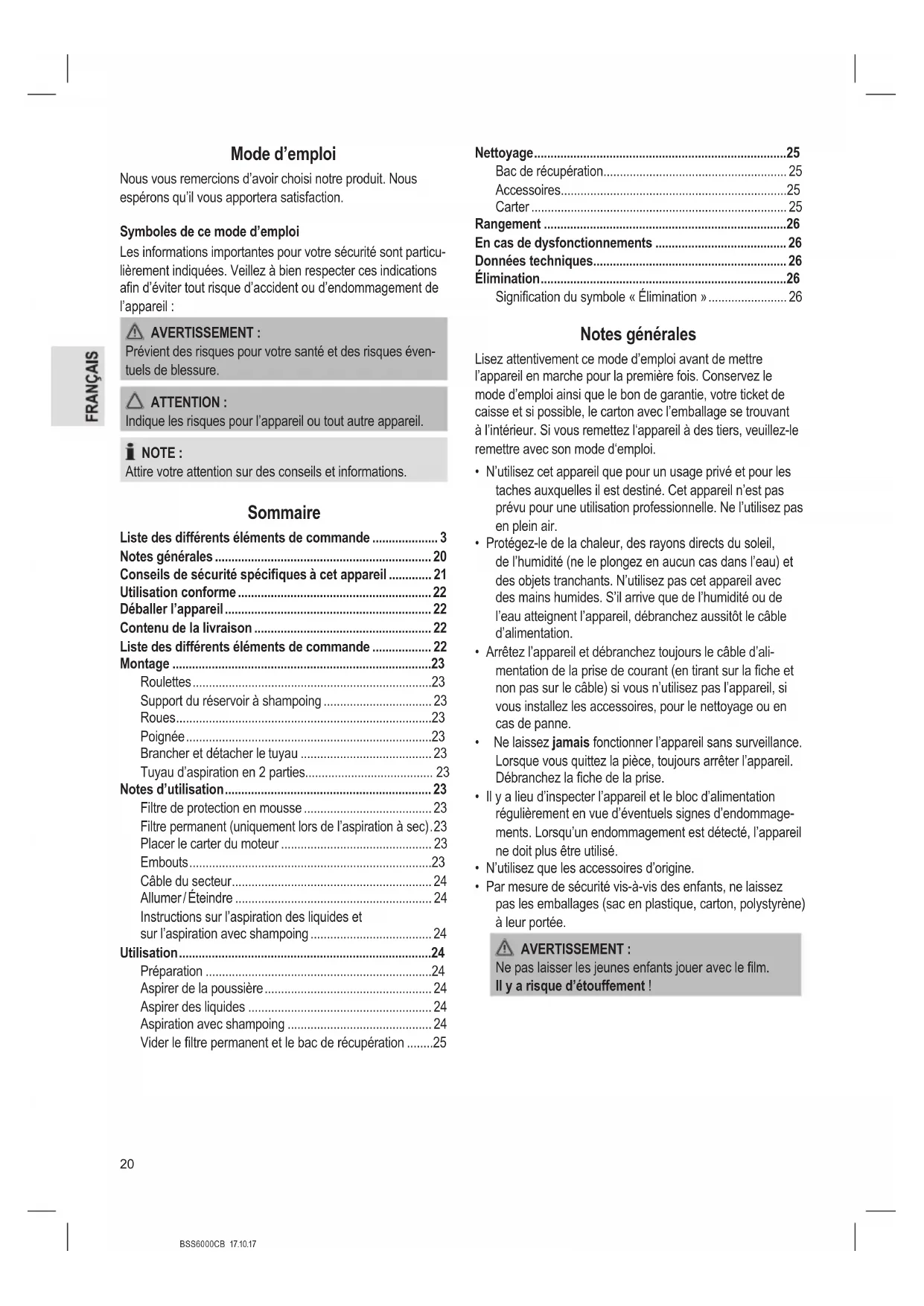 Ne pas laisser les jeunes enfants jouer avec le lm. Il y a risque d’étouffement !BSS6000CB 17.10.17