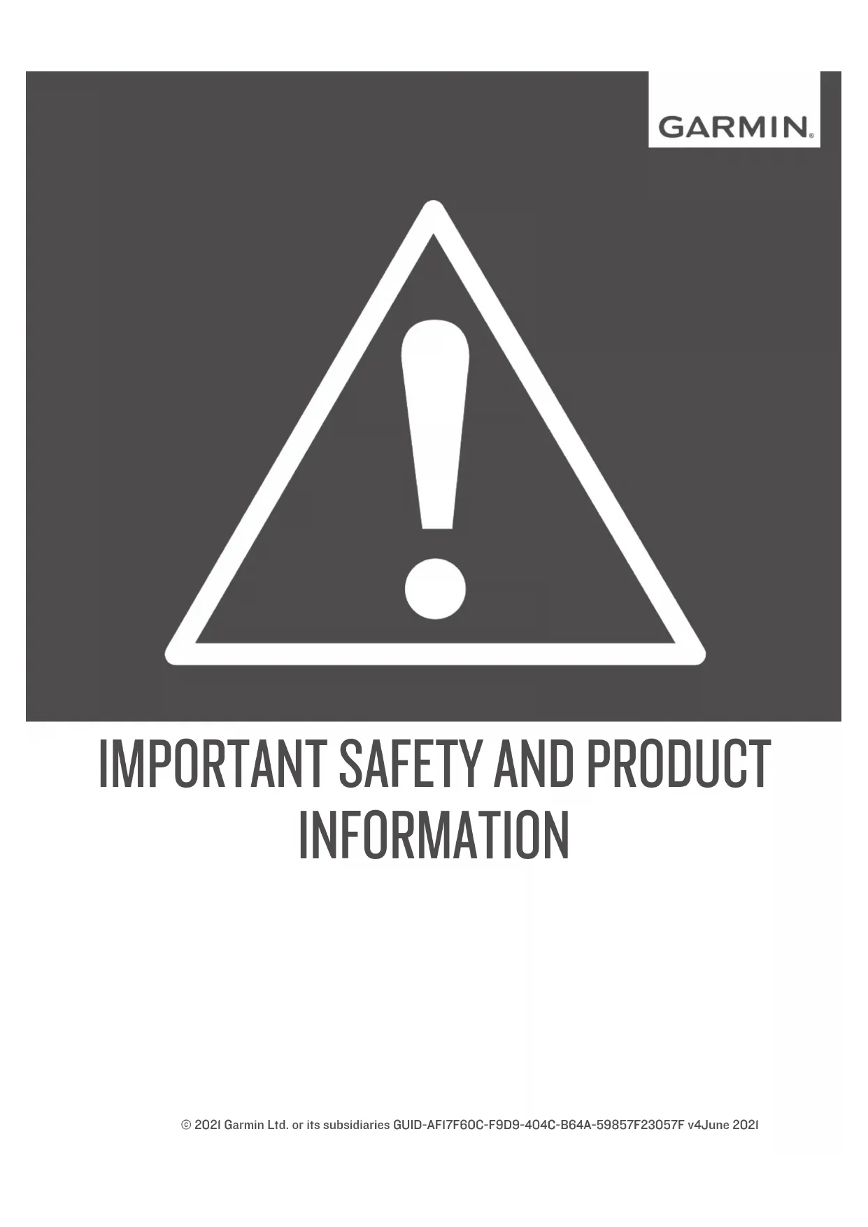 PEUVENT NE PAS VOUS CONCERNER. Si, pendant la durée de la garantie, vous faites une demande de services de garantie conformément à la présente Garantie limitée, Garmin peut, à sa discrétion : (i) réparer l'appareil à l'aide de pièces neuves ou déjà utilisées, si celles-ci remplissent les critères de qualité de Garmin, (ii) remplacer l'appareil par un appareil neuf ou par un appareil remis à neuf qui remplit les critères de qualité de Garmin ou (iii) rembourser l'appareil au prix où vous l'avez acheté. CE TYPE DE RECOURS SERA VOTRE RECOURS UNIQUE ET EXCLUSIF POUR TOUTE RUPTURE DE GARANTIE. Les appareils réparés ou remplacés bénéficient d'une garantie de 90 jours. Si l'unité envoyée est toujours couverte par la garantie d'origine, cette nouvelle garantie dure 90 jours ou jusqu'à la fin de la période de garantie d'origine qui est d'un an ; la période ayant la date de fin la plus éloignée prévaut. Avant de demander des services de garantie, merci de consulter les ressources d'aide en ligne disponibles sur support.garmin.com. Si votre appareil ne fonctionne toujours pas correctement après avoir appliqué les consignes indiquées en ligne, contactez un centre de service autorisé par Garmin dans le pays où vous avez acheté l'appareil ou suivez les instructions disponibles sur le site support.garmin.com pour obtenir des services de garantie. Si vous vous trouvez aux États-Unis, vous pouvez aussi appeler le 1-800-800-1020. 9Si vous demandez des services de garantie en dehors du pays où vous avez acheté l'appareil, Garmin ne peut pas garantir que les pièces et produits nécessaires à la réparation ou au remplacement de votre produit seront disponibles, car les offres, les normes, les lois et les réglementations diffèrent selon les pays. Dans ce cas, Garmin peut, à sa seule discrétion et conformément au droit applicable, réparer votre produit à l'aide de pièces comparables ou remplacer votre produit par un produit Garmin comparable, ou vous demander d'envoyer votre produit vers un centre de service autorisé par Garmin dans le pays où vous avez acheté le produit ou vers un centre de service autorisé par Garmin d'un autre pays où votre produit pourra être réparé ou remplacé, et, dans ce cas, vous devrez respecter le droit et les réglementations en matière d'importation et d'exportation et vous acquitter seul des droits de douane, de la TVA, des frais d'expédition ainsi que de tous autres taxes et frais. Dans certains cas, Garmin et ses revendeurs ne peuvent ni réparer votre produit dans un autre pays que celui où vous avez acheté le produit, ni envoyer un produit de remplacement neuf ou réparé dans ce pays, à cause des normes, lois et réglementations du pays en question. Achats dans le cadre d'enchères en ligne : les confirmations de vente aux enchères en ligne ne sont pas acceptées dans le cadre d'une vérification sous garantie. Pour bénéficier d'un service sous garantie, l'original ou une copie de la facture dressée par le premier revendeur doit être présenté. Garmin ne procédera à aucun remplacement de composant manquant sur tout produit acheté dans le cadre d'enchères en ligne. Achats internationaux : selon les pays, une garantie distincte peut être accordée par les distributeurs internationaux pour les appareils achetés hors des Etats- Unis. Le cas échéant, cette garantie est fournie par le distributeur du pays d'achat et ledit distributeur prend en charge les services locaux nécessaires pour votre appareil. Les garanties distributeur sont valides uniquement dans les zones de distribution visées. 10Informazioni importanti sulla sicurezza e sul prodotto AVVERTENZA Il mancato rispetto delle indicazioni fornite di seguito potrebbe causare incidenti e tamponamenti gravi o mortali. Avviso distrazione Questo dispositivo è concepito per aumentare la sicurezza se utilizzato correttamente. Se utilizzato in modo errato, l'utente può distrarsi visualizzando lo schermo e ciò può causare incidenti con lesioni personali o morte. Le informazioni sul dispositivo devono essere visualizzate in un colpo d'occhio. Mantenere sempre l'attenzione sull'ambiente circostante e non guardare fisso lo schermo onde evitare distrazioni. Visualizzare lo schermo potrebbe impedire di evitare ostacoli o pericoli. Avvisi relativi all'installazione sul veicolo