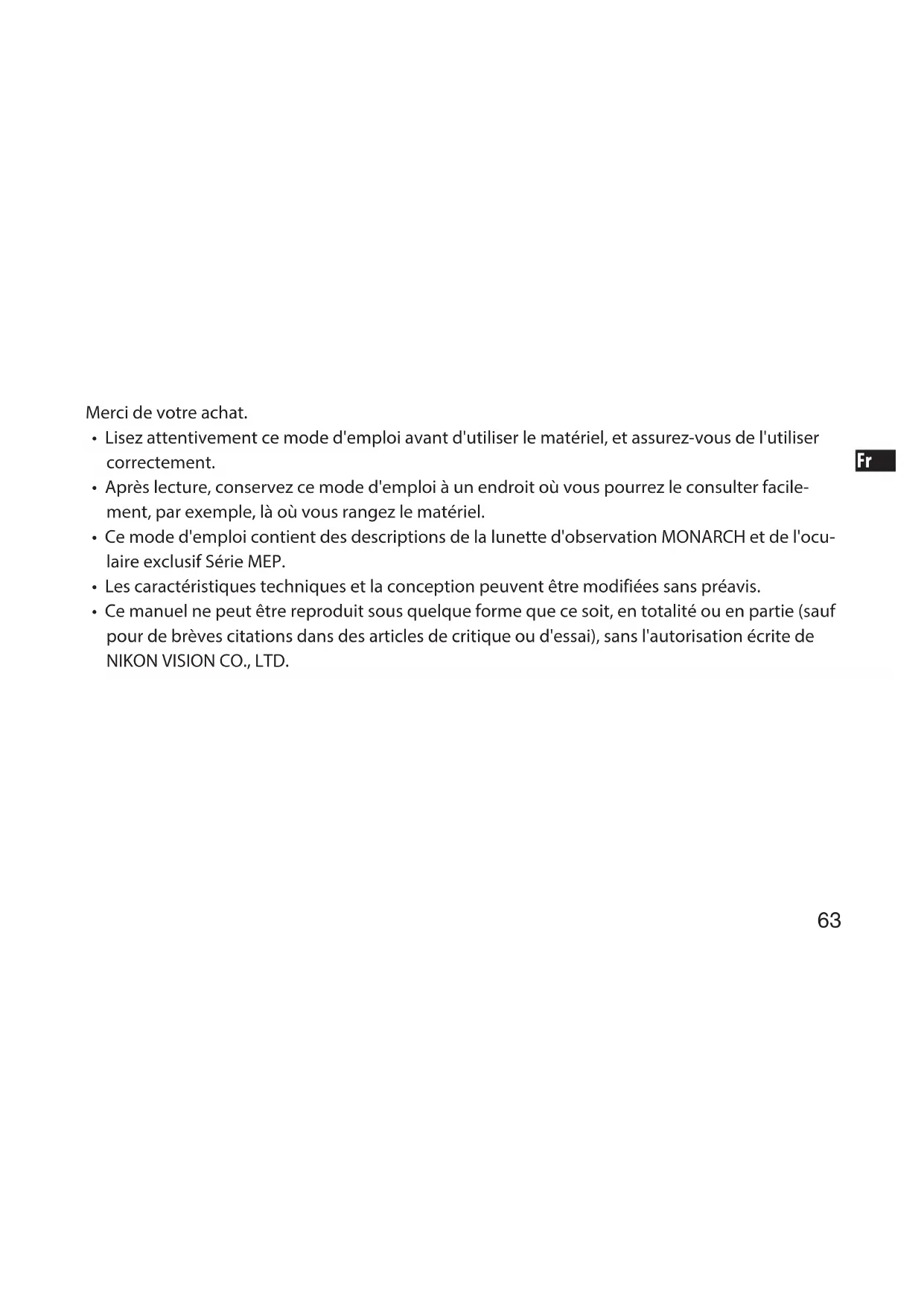 MODE D'EMPLOI Monarch ED NIKON