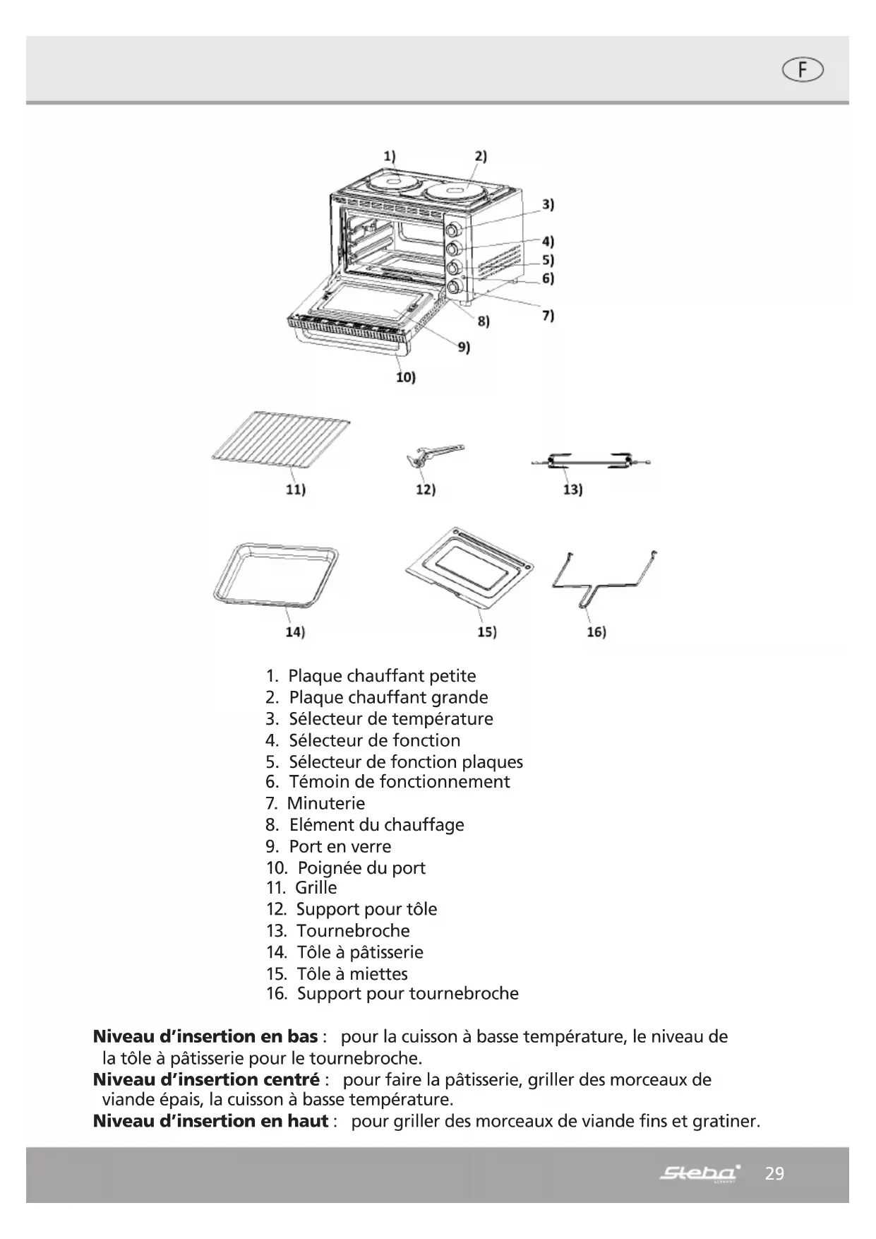 | Accessoires inclus | Grille de cuisson, plat à rôtir |