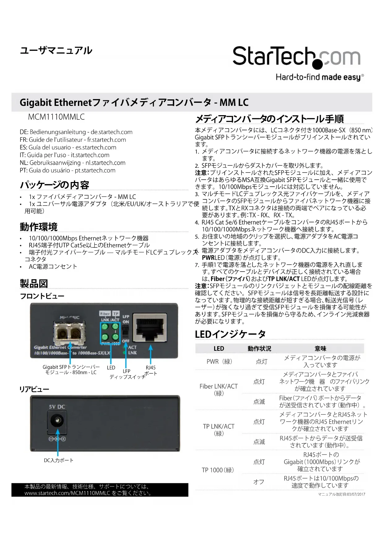 MCM1110MMLC - Carte réseau / adaptateur StarTech.com - Notice d'utilisation et mode d'emploi gratuit