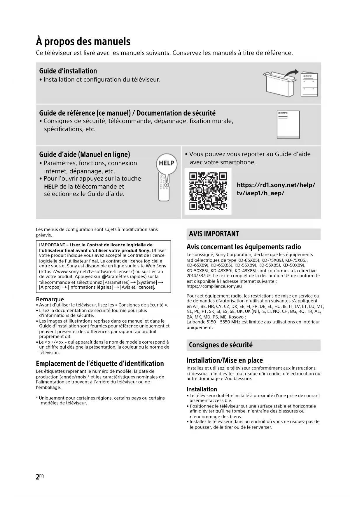 KD75X85TJ - Téléviseur SONY - Notice d'utilisation et mode d'emploi gratuit