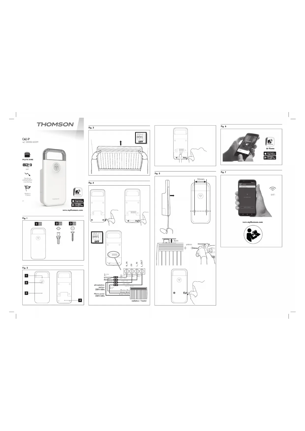 Smarthome France déclare que l’équipement est en conformité avec les exigences essentielles applicables de la Directive RED 2014/53/EU. Directive 2014/35/EU: (protection de la santé et sécurité des utilisateurs. Directive 2014/30/EU: (exigences de protection en ce qui concerne la compatibilité électromagnétique). Directive 2014/53/EU : (utilisation effi cace du spectre radioélectrique, de façon à éviter les interférences dommageables). La déclaration de conformité complète est disponible sur le site www.mythomson.com A Tours le 21/05/2019 Alexandre Chaverot, président Retrouvez l’intégralité de notre gamme Thomson sur Pour en savoir plus : www.quefairedemesdechets.fr est une marque de TECHNICOLOR S.A. ou de ses affi liées utilisée sous licence par : SmartHome France 19 avenue Marcel Dassault ZAC des Deux Lions - 37200 Tours - France WiFi heating module