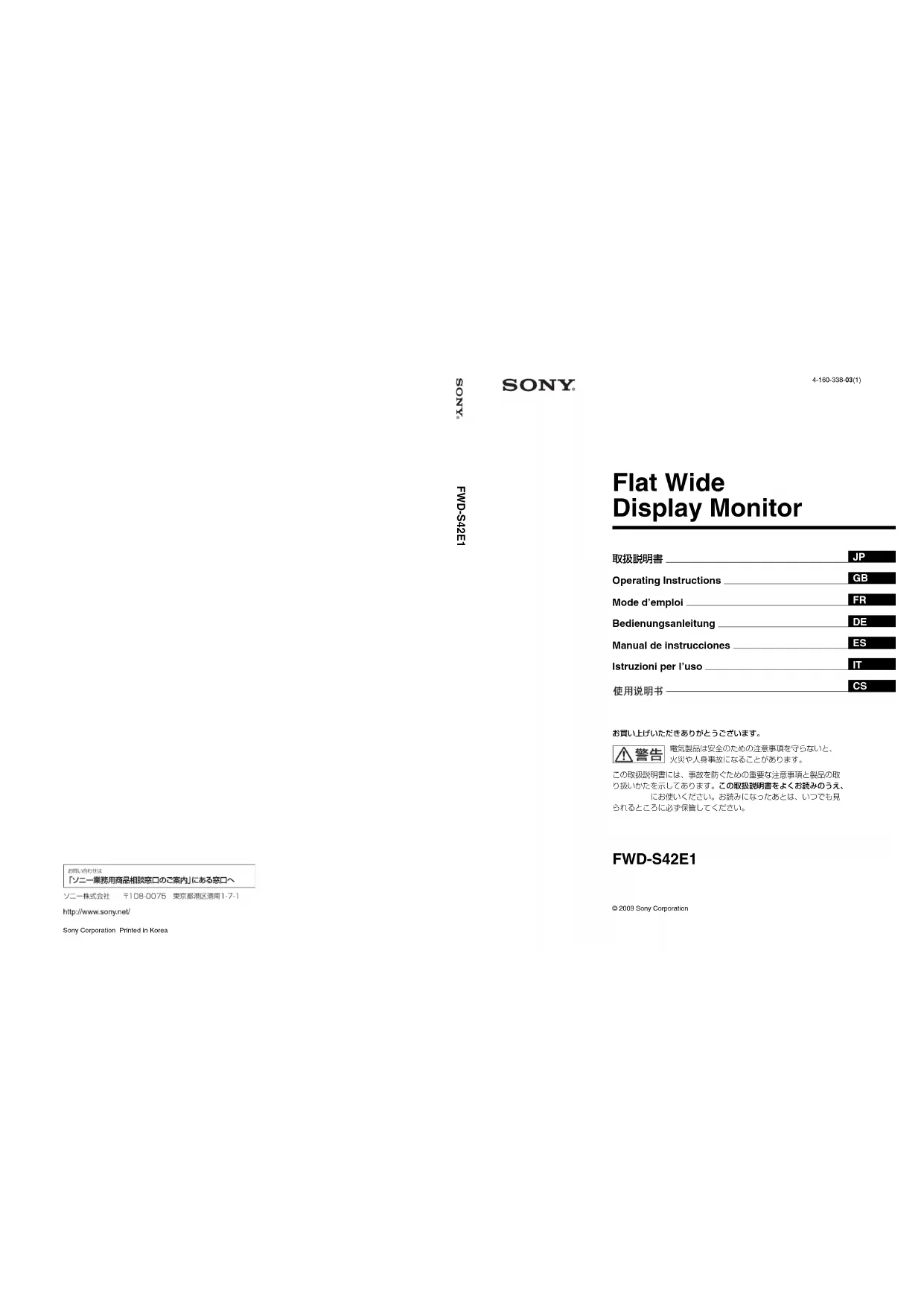 FWDS42E1 - Moniteur SONY - Notice d'utilisation et mode d'emploi gratuit