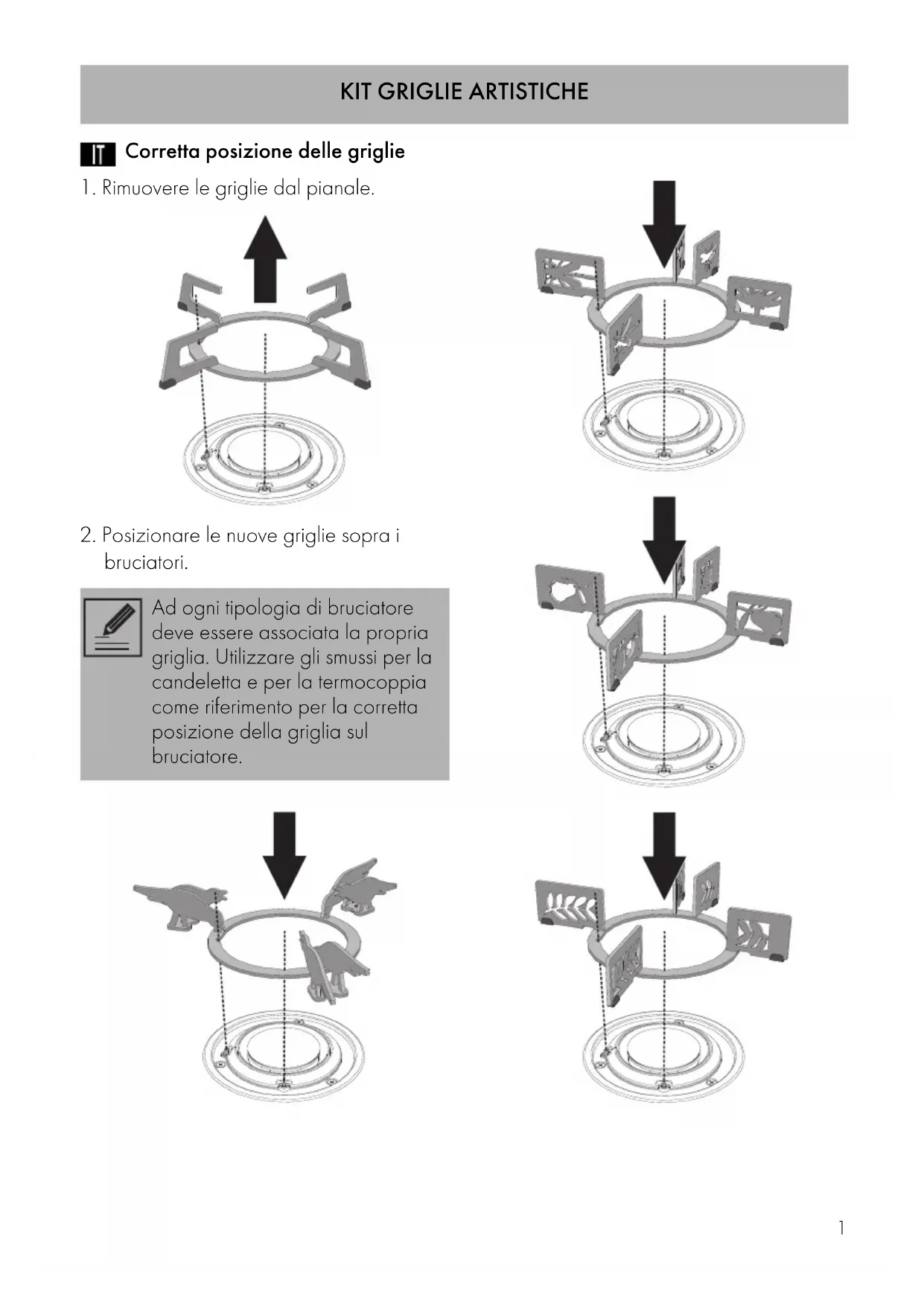 brûleurs. A chaque type de brûleur correspond une grille. Utilisez les chanfreins pour la bougie et le thermocouple comme référence pour la position correcte de la grille du brûleur.6