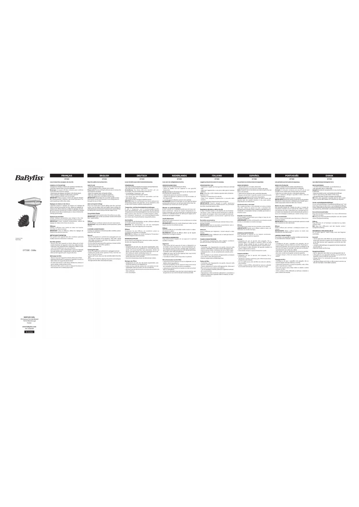Hydro Fusion D773DE - Sèche-cheveux BABYLISS - Notice d'utilisation et mode d'emploi gratuit