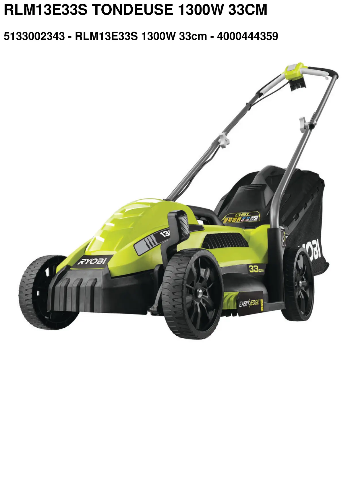 RLM13E33S - Tondeuse à gazon électrique RYOBI - Notice d'utilisation et mode d'emploi gratuit
