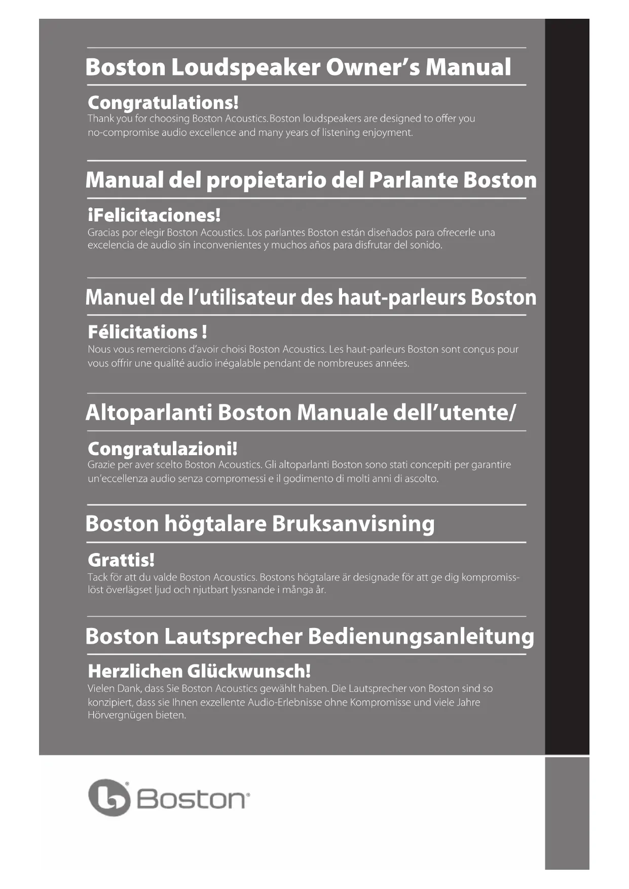 Téléchargez la notice de votre Haut-parleur au format PDF gratuitement ! Retrouvez votre notice Reflection RS 334 - BOSTON ACOUSTICS et reprennez votre appareil électronique en main. Sur cette page sont publiés tous les documents nécessaires à l'utilisation de votre appareil Reflection RS 334 de la marque BOSTON ACOUSTICS.
