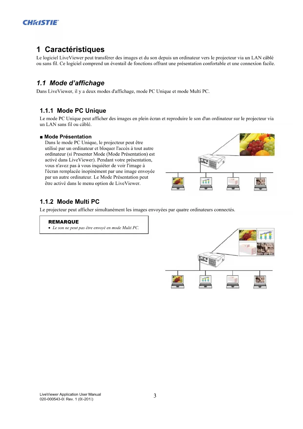 - Annexe LiveViewer Application User Manual 020-000543-0 Rev. 1 (0-201)3 1 Caractéristiques Le logiciel LiveViewer peut transférer des images et du son depuis un ordinateur vers le projecteur via un LAN câblé ou sans fil. Ce logiciel comprend un éventail de fonctions offrant une présentation confortable et une connexion facile. p. 36