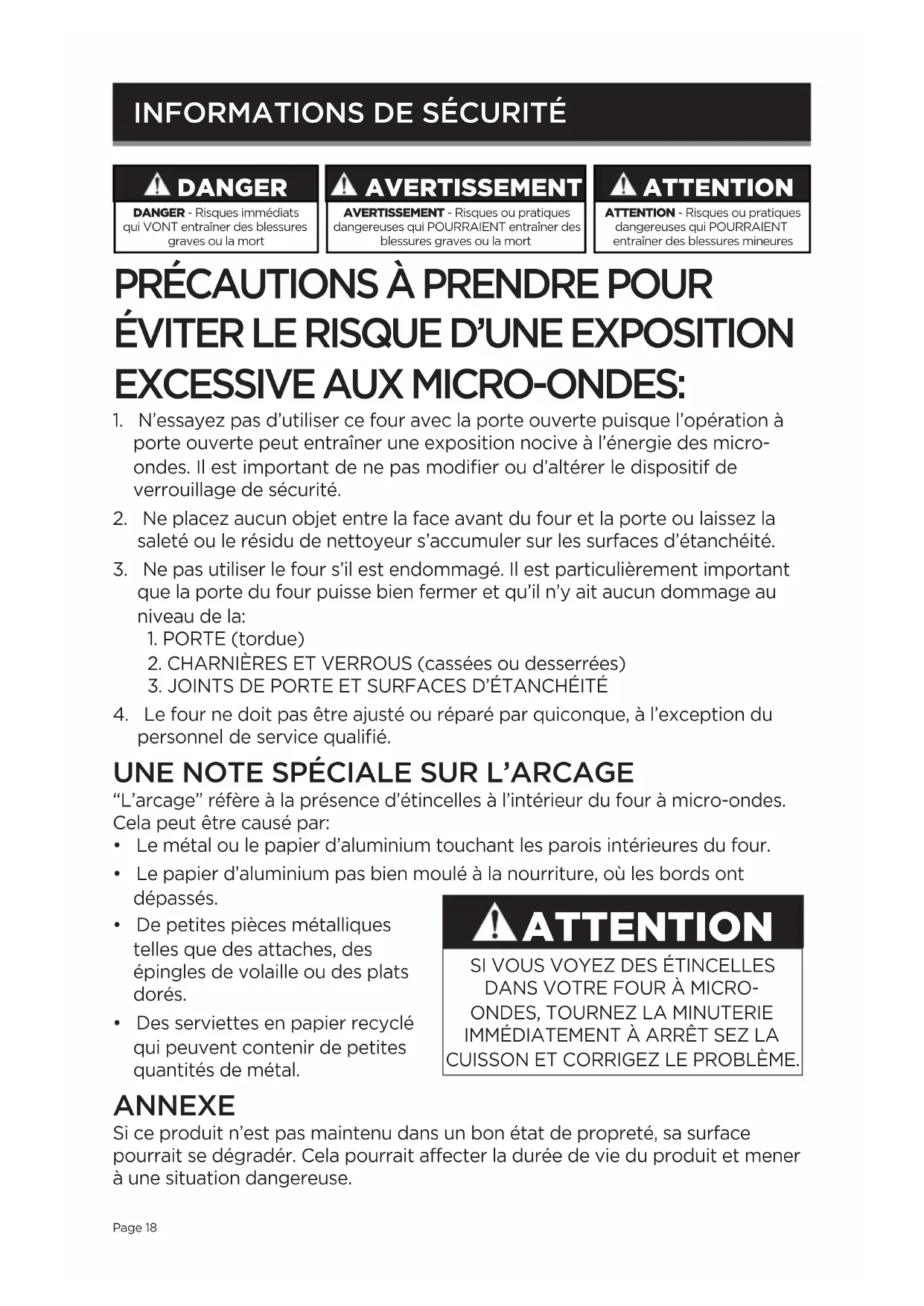 exposition possible à l’énergie mico-ondes excessive” spéciques à la page 3.
