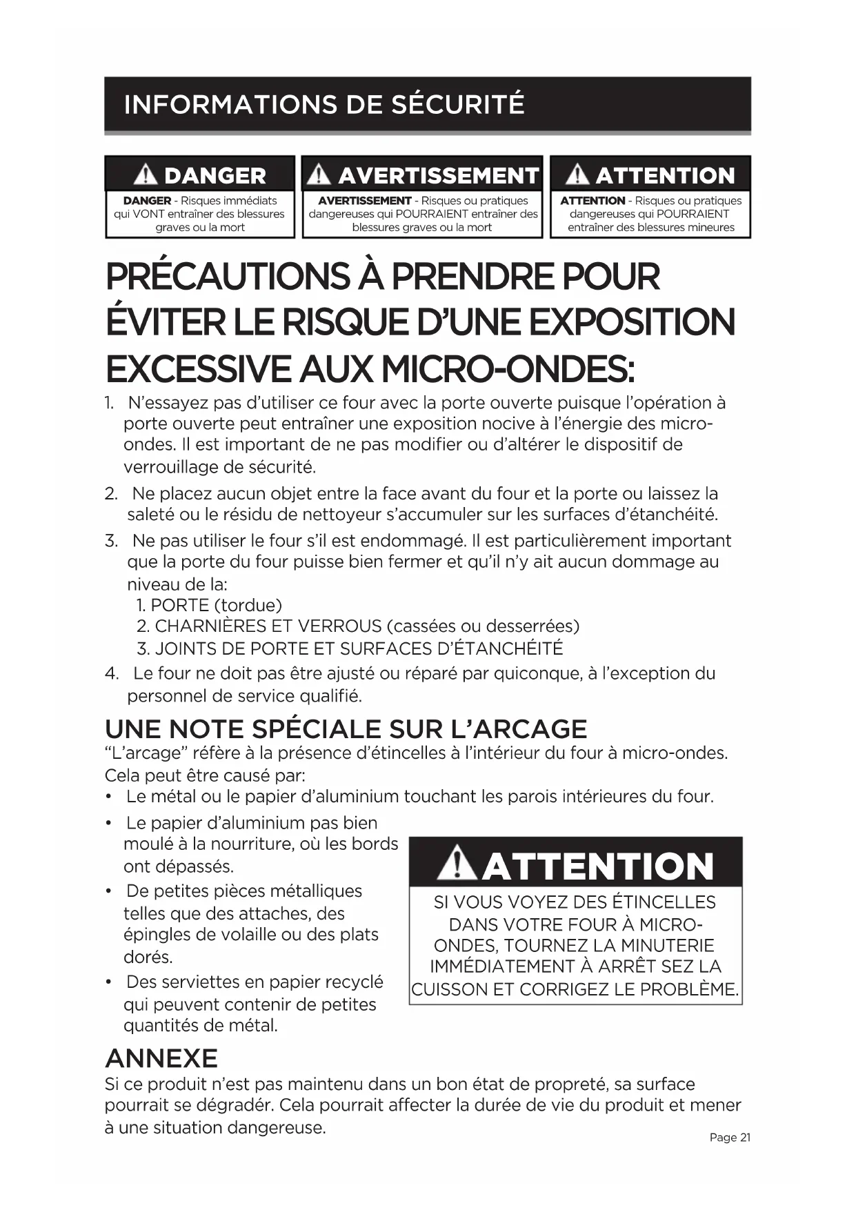 exposition possible à l’énergie mico-ondes excessive” spéciques à la page 3.