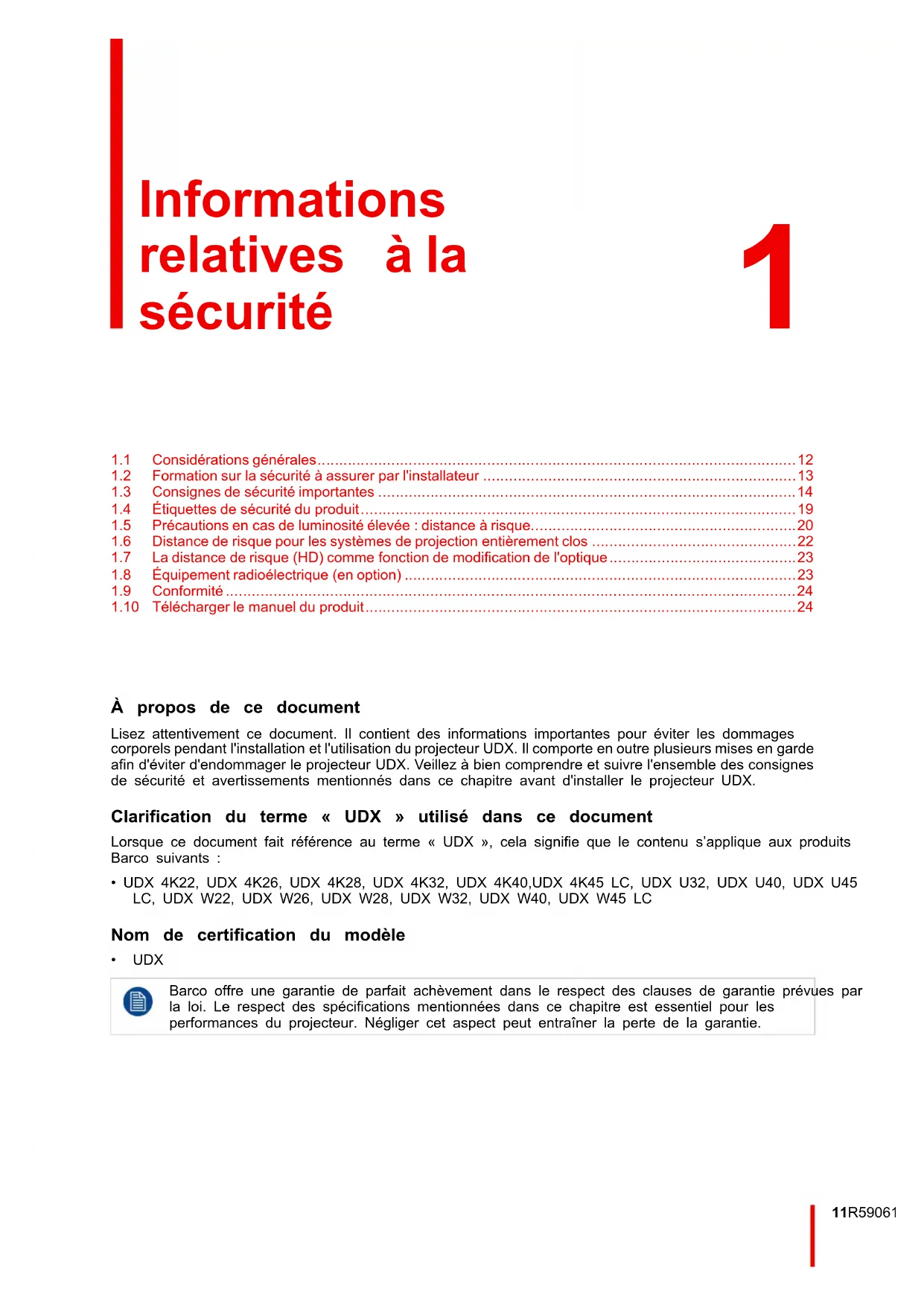 - 1.6 Distance de risque pour les systèmes de projection entièrement clos p. 22