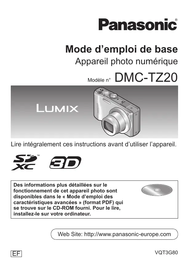Retrouvez gratuitement la notice de l'appareil DMC-TZ20 PANASONIC au format PDF.