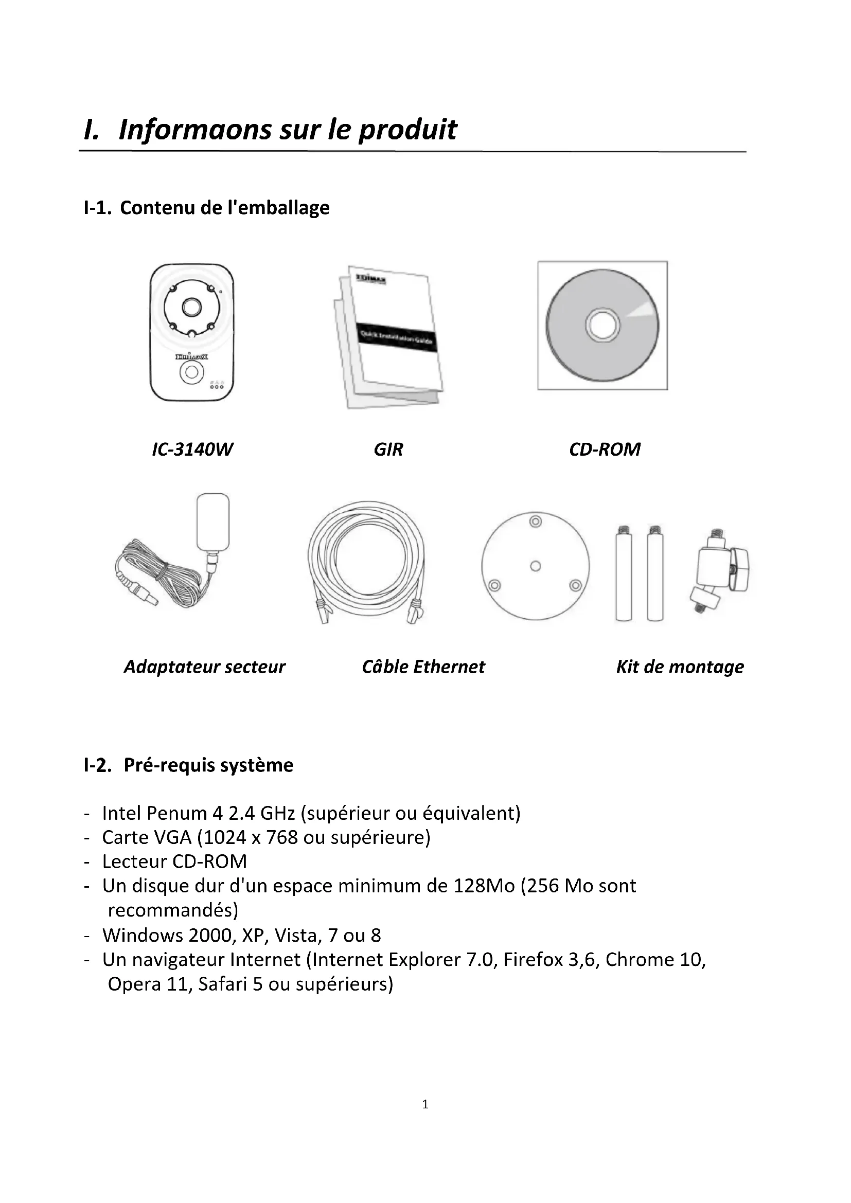 I-1. Contenu de l'emballage