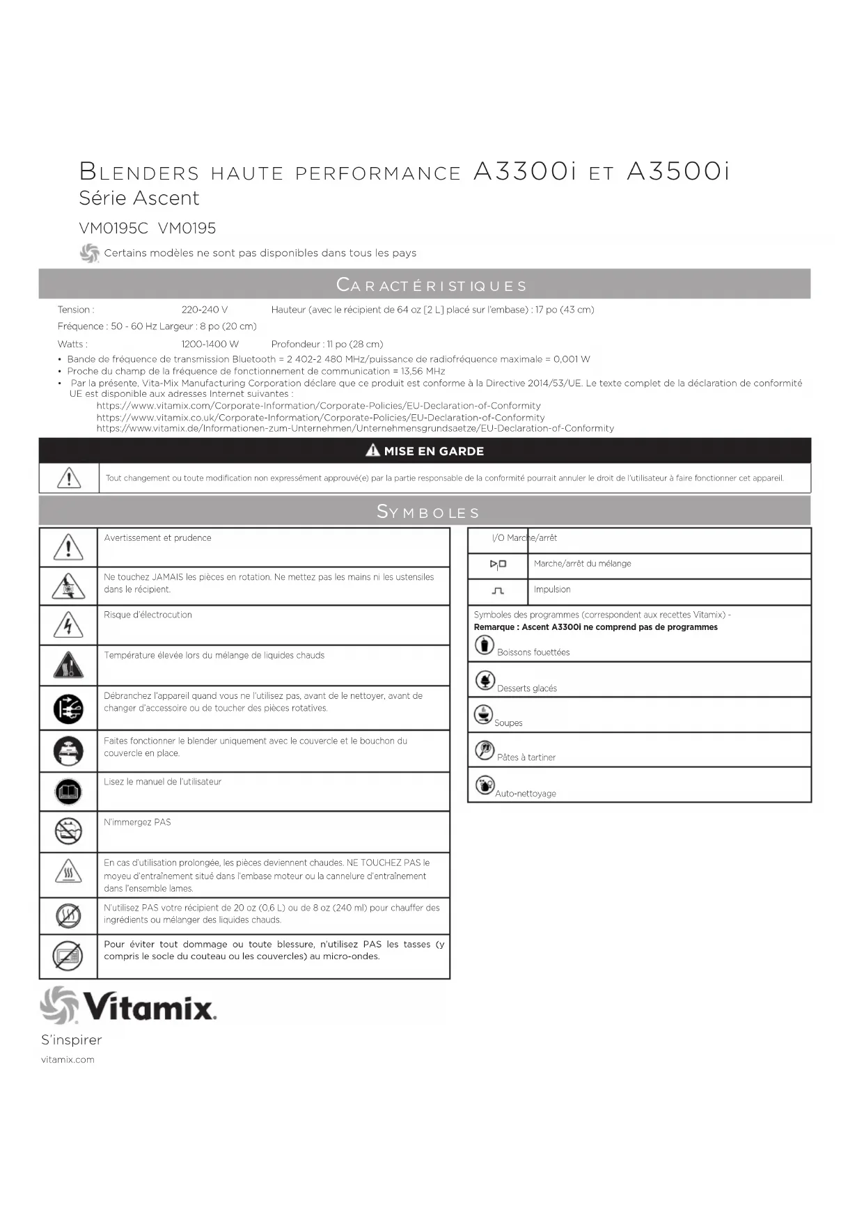 MODE D'EMPLOI Ascent A3300i Vitamix