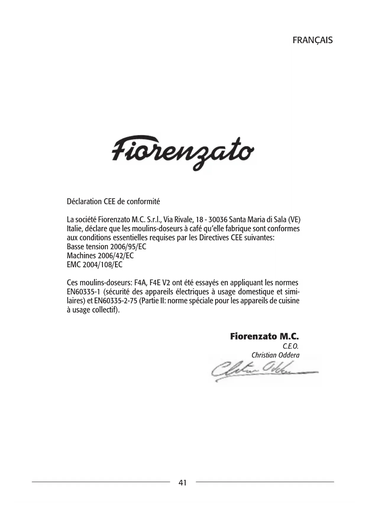 Retrouvez gratuitement la notice de l'appareil F4 E Fiorenzato au format PDF.